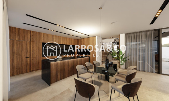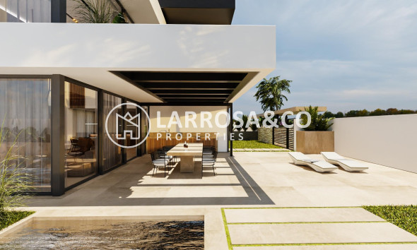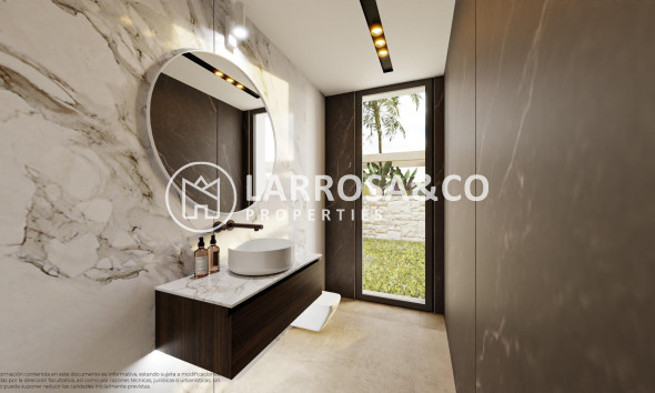 Villa de lujo de nueva construcción en venta en La Zenia, Orihuela Costa Vida exclusiva cerca de la playa en la Costa Blanca Situada a solo 1 km de las playas de arena de La Zenia, esta impresionante villa de lujo en Orihuela Costa ofrece el equilibrio perfecto entre comodidad, diseño y estilo de vida mediterráneo. Con 4 amplios dormitorios, cada uno con su propio cuarto de baño en suite, además de un aseo para invitados, esta casa es ideal para familias o para aquellos que buscan un espacioso refugio vacacional cerca del mar. Diseño premium y características exteriores Situada en una generosa parcela privada de 580 m2, la villa está diseñada con acabados de alta calidad y atención al detalle. Cuenta con: Orientación sur-sureste para una óptima luz natural Gran piscina privada con jacuzzi integrado Zona chill-out con pérgola bioclimática automática, cocina exterior y aseo exterior. Garaje subterráneo privado con espacio para varios vehículos Precioso jardín paisajístico ideal para la vida al aire libre Esta propiedad le permite disfrutar del clima soleado de la Costa Blanca durante todo el año. Tecnología avanzada y confort Construida para la vida moderna, la villa incluye características de última generación: Puerta de entrada blindada de seguridad Calefacción eléctrica por suelo radiante con control de temperatura por habitaciones Sistema de aire acondicionado por zonas (frío y calor) mediante conductos Preinstalación para domótica para gestionar persianas, climatización y seguridad técnica Ventanas de aluminio con doble acristalamiento y poliuretano inyectado para un aislamiento superior Baños de diseño con iluminación LED, muebles suspendidos y mamparas de ducha de cristal de seguridad correderas El sistema de agua caliente funciona con tecnología de bomba de calor aerotérmica, lo que mejora la eficiencia energética. Ubicación privilegiada en La Zenia La Zenia es una zona residencial muy cotizada en Orihuela Costa, conocida por su animada comunidad, sus servicios durante todo el año y su proximidad a la playa. Los residentes disfrutan de acceso a: Centro comercial La Zenia Boulevard: 2,5 km Campo de golf Villamartín: 4,5 km Centro de Torrevieja: 9 km Aeropuerto de Alicante: 40 km Aeropuerto de Murcia-Corvera: 60 km Rodeada de restaurantes, bares, colegios internacionales y supermercados, La Zenia es una de las zonas más dinámicas del sur de la Costa Blanca. Asegúrese la villa de sus sueños en La Zenia Tanto si busca una residencia familiar de lujo como una inversión de primera calidad en la costa mediterránea, esta villa es una oportunidad excepcional. Póngase en contacto con nosotros hoy mismo para obtener más información, concertar una visita y hacer realidad la casa de sus sueños antes de que sea demasiado tarde.