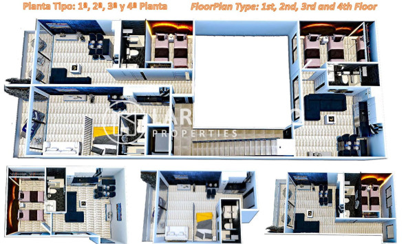 Promoción de obra nueva en el corazón de Torrevieja Situada en el vibrante centro de Torrevieja, esta promoción de obra nueva ofrece la combinación perfecta de vida moderna y accesibilidad. Situado a sólo 300 metros de una amplia gama de servicios, incluyendo restaurantes, bares, supermercados, taxis, paradas de autobús, farmacias y bancos, esta propiedad ofrece una comodidad sin precedentes en una de las zonas más codiciadas de la ciudad. Proximidad a playas y ocio Una de las características más destacadas de esta propiedad es su proximidad a las impresionantes playas de Torrevieja, situadas a sólo 600 metros de distancia. Tanto si busca relajarse junto al mar como explorar la zona, se encontrará cerca de algunos de los mejores lugares costeros. Además, el famoso centro comercial «Las Habaneras» está a sólo 1 km de distancia, ofreciendo una variedad de tiendas, entretenimiento y opciones gastronómicas. Para los amantes del aire libre, el hermoso «Parque Europa» también está cerca, perfecto para paseos y excursiones en familia. Diseño moderno y comodidades Este edificio residencial consta de 17 unidades, con estudios y apartamentos de 1, 2 y 3 dormitorios. Diseñado con la vida moderna en mente, cada unidad ofrece amplios interiores y acabados de alta calidad. Los residentes pueden disfrutar de una zona comunitaria en la azotea con una piscina de cristal climatizada, perfecta para relajarse durante todo el año. Almacenamiento adicional y ventajas de ubicación El edificio también ofrece grandes trasteros opcionales situados en el sótano, proporcionando espacio extra para sus pertenencias. Los principales puntos de interés de Torrevieja, como el aeropuerto de Alicante (a 45 km) y campos de golf cercanos como el de Villamartín (a 10 km), hacen de esta una ubicación ideal para aquellos que buscan un entorno de vida bien conectado y vibrante. Esta propiedad en el corazón de Torrevieja ofrece todo lo necesario para una vida moderna y costera.