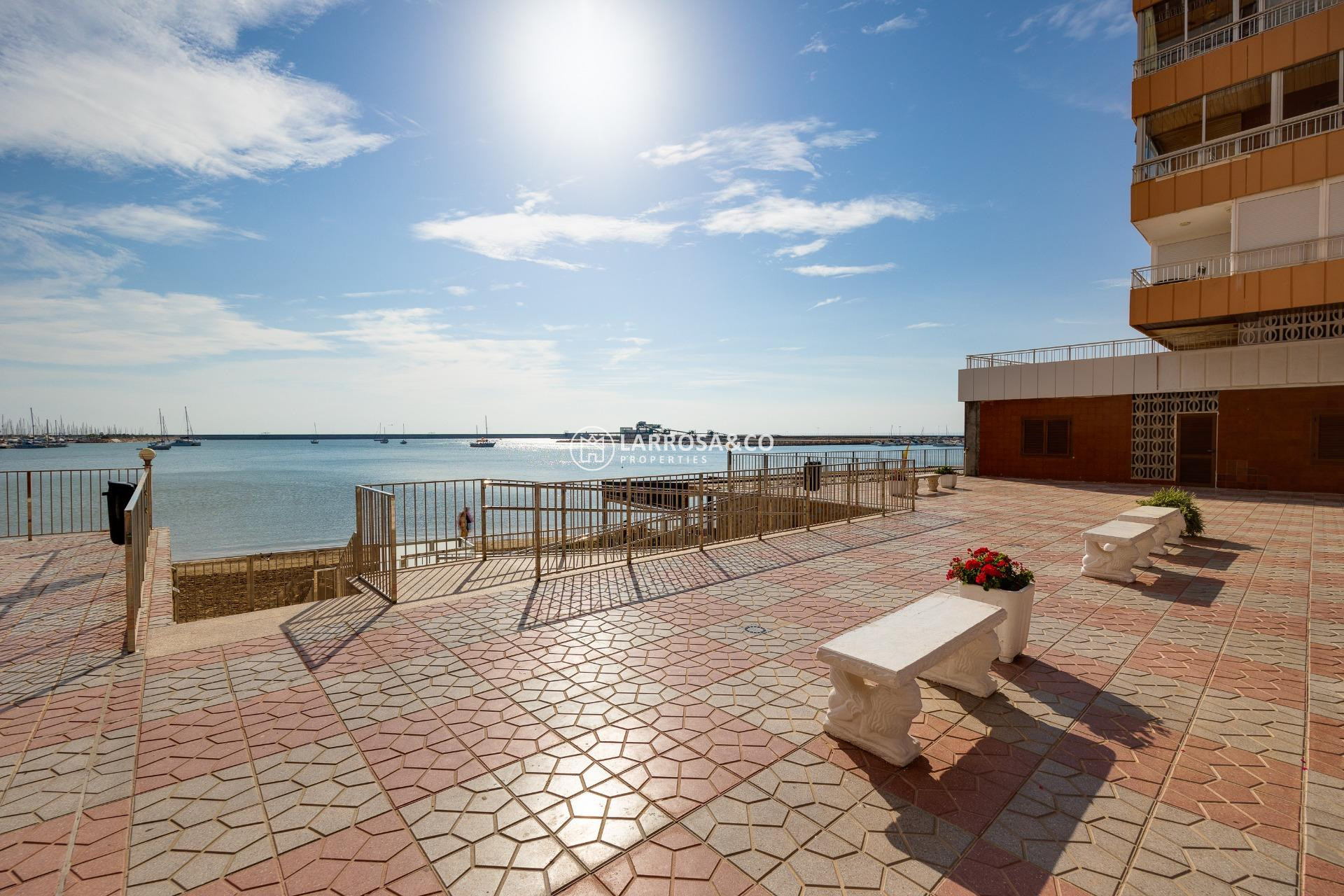 Descubre esta auténtica joya inmobiliaria ubicada en la octava planta del reconocido edificio NAVAMARES, en primera línea. Una propiedad única con impresionantes vistas al mar, al puerto deportivo y a las salinas de Torrevieja, ideales para disfrutar de amaneceres y puestas de sol inolvidables desde la comodidad de tu hogar.~~La vivienda ha sido completamente renovada con un diseño moderno, elegante y funcional. Se compone de 3 dormitorios dobles y 2 baños completos con plato de ducha. La cocina independiente está totalmente equipada con electrodomésticos de última generación, que además conecta con una práctica zona de lavandería/galería. El salón-comedor, amplio y muy luminoso, se abre a una gran terraza, perfecta para relajarse o compartir momentos especiales con sus increíbles vistas despejadas y privilegiadas. La terraza cuenta, además, con un espacio cerrado tipo trastero, ideal como zona de almacenaje extra.~~Incluye extras exclusivos que aumentan el confort y la rentabilidad: persianas automáticas en todas las estancias, cocina equipada con lavavajillas, descalcificador de agua y sistema de ósmosis, aire acondicionado por conductos con control domótico (manejo desde el móvil) y LICENCIA TURISTICA activa y aprobada por la comunidad, ideal para inversores.~~Garaje cerrado opcional con puerta automática con mando, ubicado en el mismo edificio y con acceso a la vivienda mediante ascensor por solo 30.000€ mas.~~Esta propiedad representa una combinación perfecta entre ubicación, calidad, confort y rentabilidad, convirtiéndola en una oportunidad única tanto para quienes buscan una residencia de lujo frente al mar, como para quienes desean una inversión segura y con alta demanda turística.~~No dejes escapar esta oportunidad exclusiva. Vive el Mediterráneo como nunca antes. ~~~