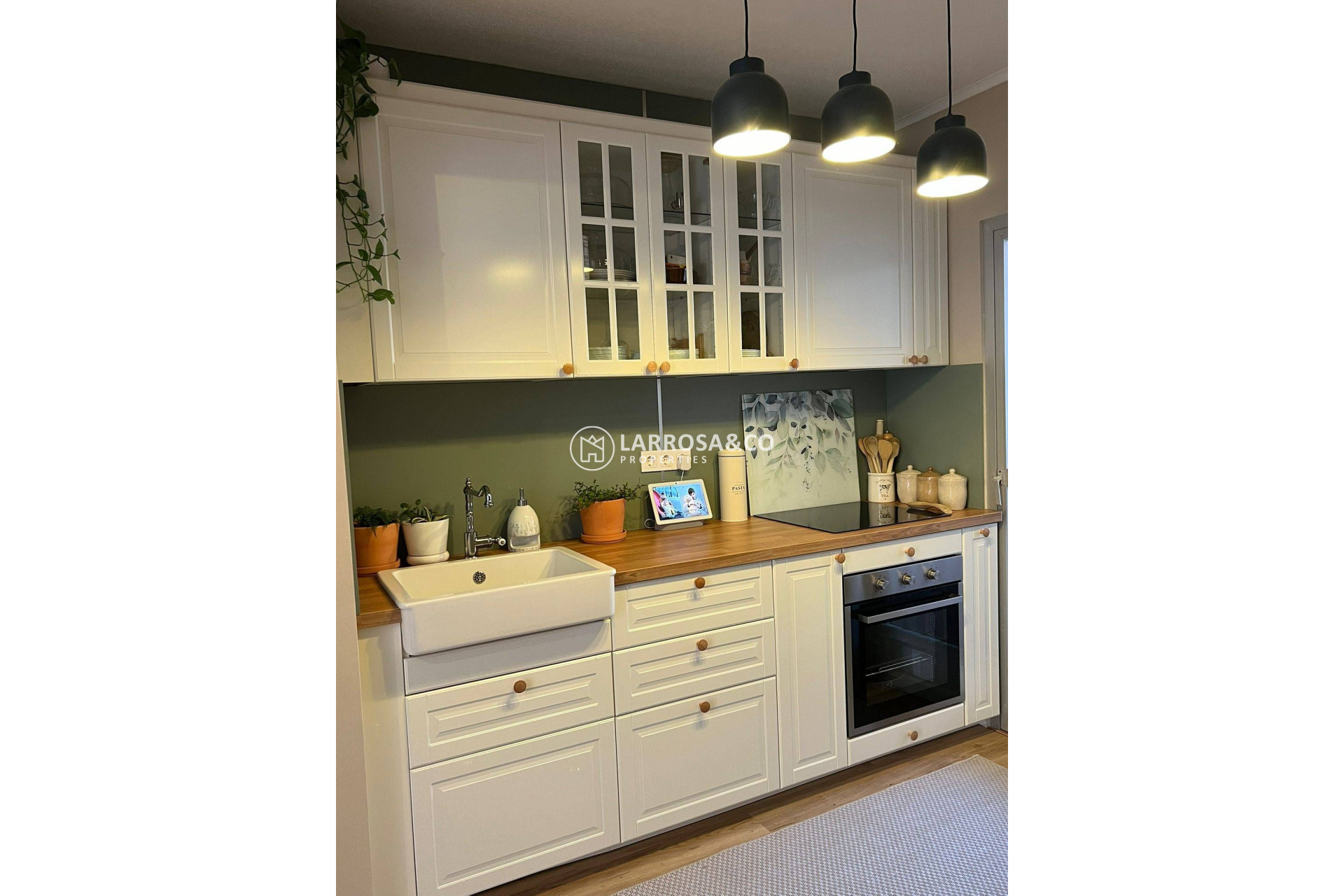 Se vende un hermoso piso en Pilar de la Horadada, ubicado en la encantadora zona de La Torre de la Horadada. Con una superficie de 84 m² y a tan solo 300 metros de la playa, esta propiedad ofrece un estilo de vida cómodo y relajado. Dispone de tres amplias habitaciones dobles, un baño completo y una cocina totalmente equipada. Su orientación sur asegura una excelente iluminación natural durante todo el día, y la carpintería exterior de PVC con climalit garantiza un ambiente acogedor y bien aislado. Entre los extras destacan agua corriente, aire acondicionado centralizado, alarma, armarios empotrados, un balcón con vistas, calefacción central, una práctica despensa y mobiliario incluido. Además, cuenta con una puerta blindada para mayor seguridad, televisión y una ubicación estratégica cerca de servicios esenciales como autobuses, árboles, centros comerciales, colegios, hospitales y supermercados. También es ideal para los amantes de la naturaleza, el golf y las actividades al aire libre, gracias a su proximidad a parques, zonas infantiles y la costa. Con vistas despejadas y al mar, esta vivienda es perfecta para disfrutar de una calidad de vida excepcional.