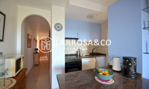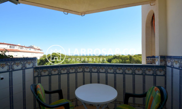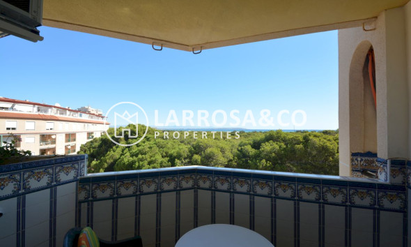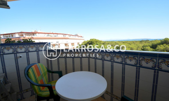 Fantásticas vistas al mar y a la pinada de Guardamar del Segura desde la terraza. Ultima planta del edificio con ascensor. 69 m2 construidos distribuidos entre 2 dormitorios, 1 baño con ventana, salón con cocina americana. Esquina, todo exterior. Orientación Noreste, sol por la mañana. Amplia terraza con una mesa para 4 personas.