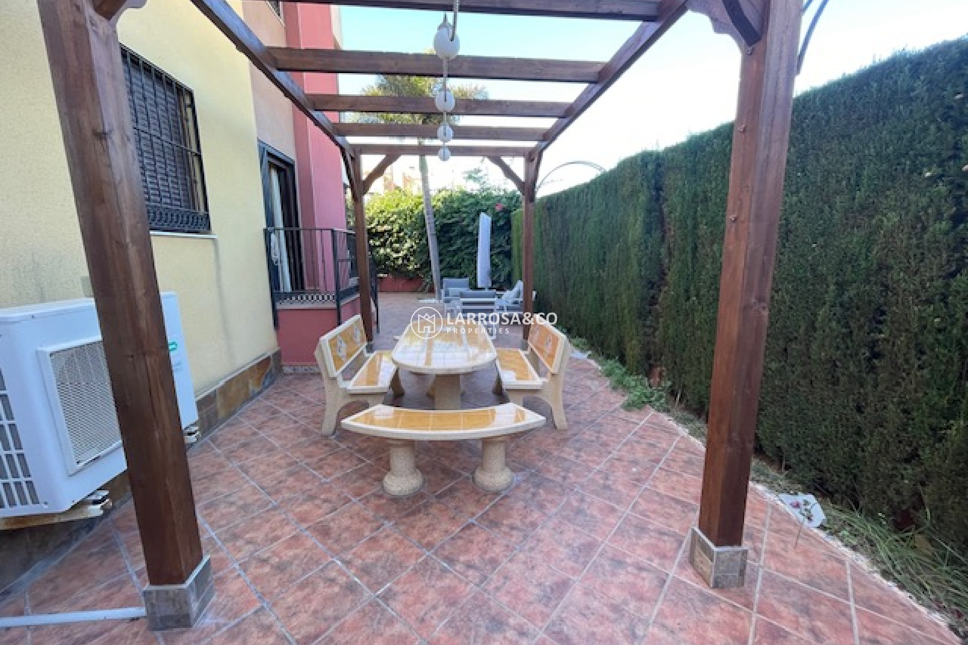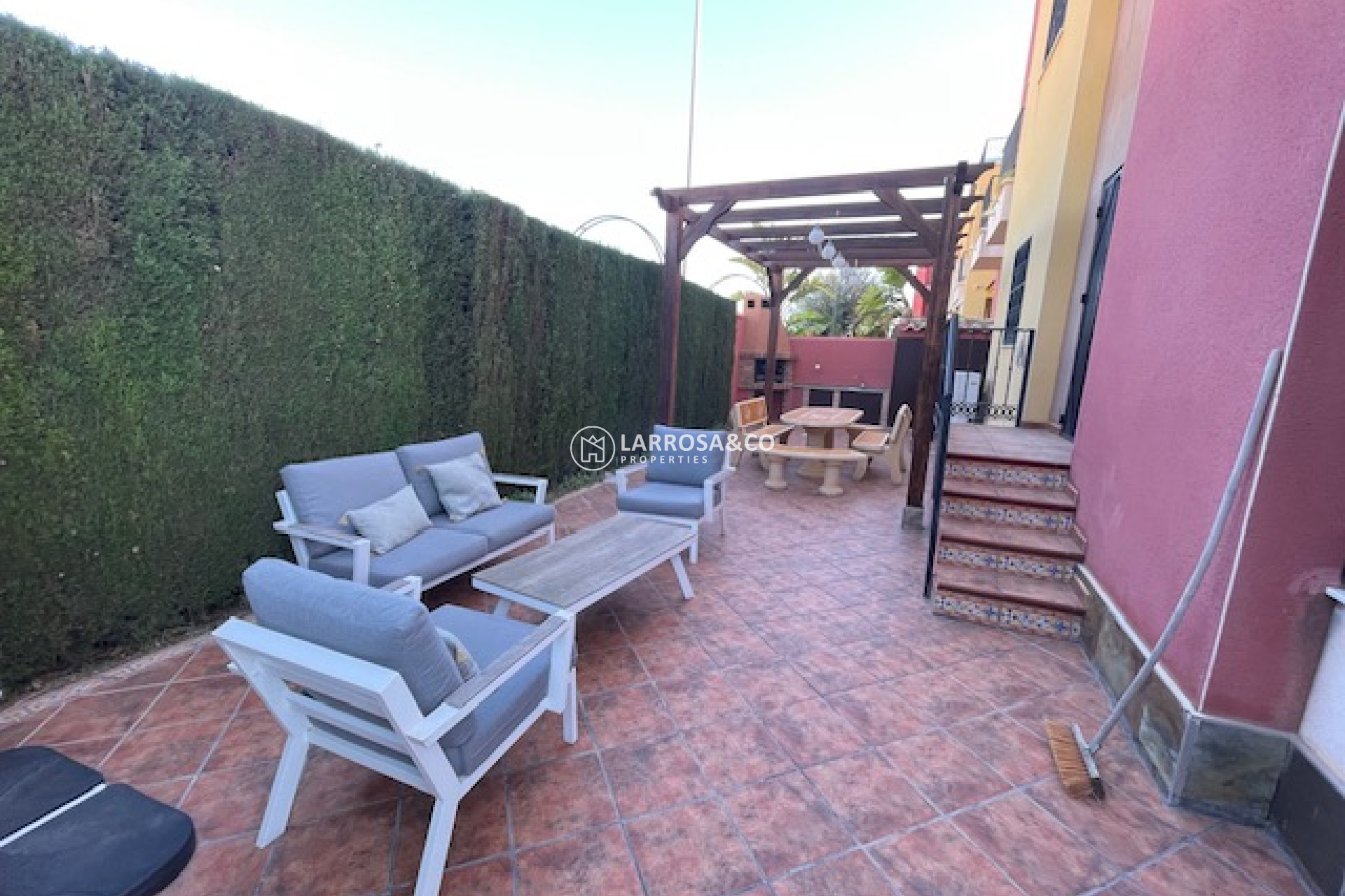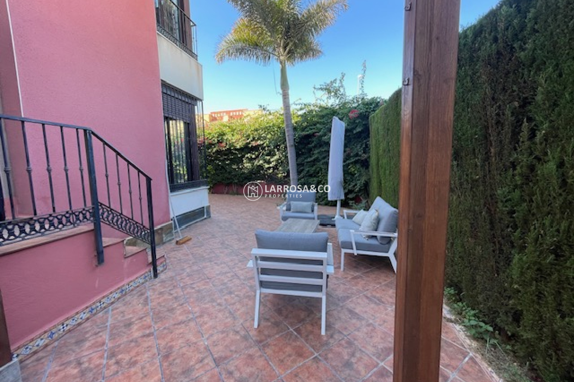Lo más destacado de este apartamento es su amplio jardín completamente enlosado, con una barbacoa construida a medida, pérgola y zona de estar. Es el escenario perfecto para cenar al aire libre, entretener a los invitados o simplemente relajarse en medio de la belleza de tu propio oasis privado.