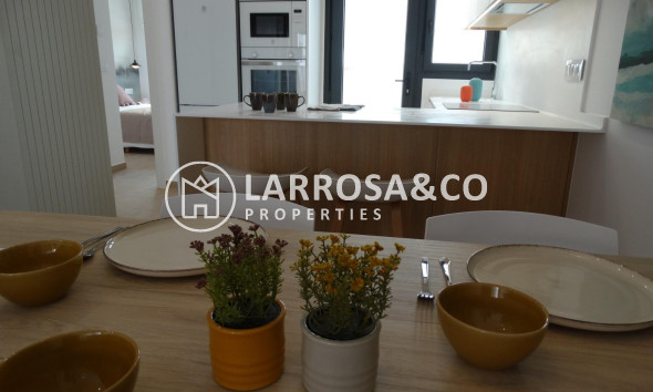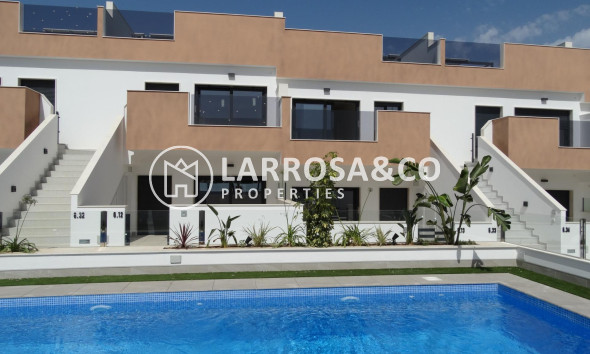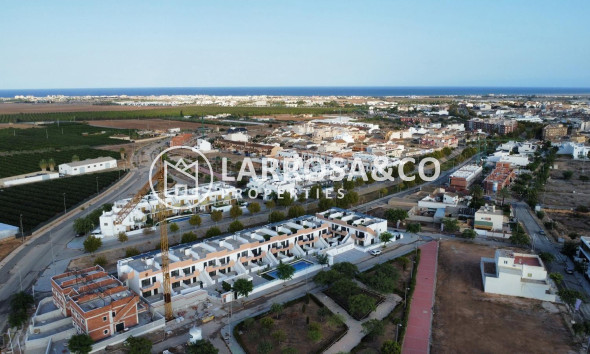 Bungalows neufs avec solarium ou jardin à Pilar de la Horadada Résidence moderne sur la Costa Blanca Sud Situé dans la charmante commune de Pilar de la Horadada, ce nouveau lotissement de bungalows offre un style de vie confortable et méditerranéen dans l'une des zones les plus attrayantes de la Costa Blanca. Pilar de la Horadada est connue pour son ambiance accueillante, son excellent climat et ses longues plages de sable fin telles que Las Higuericas et Mil Palmeras, idéales pour profiter en famille ou pratiquer des sports nautiques. Distribution et types de logements Le complexe se compose de 28 bungalows modernes disponibles en versions 2 et 3 chambres, répartis comme suit : Rez-de-chaussée avec jardin privé Étages supérieurs avec solarium privé et débarras attribué La plupart des logements sont orientés au sud, ce qui garantit une excellente luminosité, et offrent une vue sur la piscine communautaire ou le parc adjacent. Espaces fonctionnels et bien équipés Chaque logement a été conçu avec des espaces spacieux et fonctionnels : Cuisine américaine intégrée avec grand salon-salle à manger Armoires encastrées Terrasse privée dans chaque unité Place de parking incluse De plus, les logements disposent de : Eau chaude par système aérothermique Pré-installation de la climatisation Menuiserie extérieure en PVC avec double vitrage et volets en aluminium Meubles de salle de bains inclus Espaces communs et environnement naturel Le complexe résidentiel comprend une piscine communautaire entourée d'espaces verts, parfaite pour profiter du soleil et de la tranquillité. À seulement 4 km de la plage de Las Higuericas, vous pouvez facilement vous y rendre à pied ou à vélo en empruntant l'agréable promenade qui mène à la mer. Excellent emplacement et connectivité L'emplacement du lotissement permet d'accéder à tous types de services et de points d'intérêt : Supermarchés, magasins, bars et restaurants à moins d'1 km Terrains de golf tels que Lo Romero à 6 km Centre commercial Dos Mares à 11 km Plages de Mil Palmeras et Torre de la Horadada à seulement 5 minutes Aéroport de Murcie (Corvera) à 40 km Aéroport d'Alicante à 65 km Votre nouvelle vie au soleil Ce lotissement à Pilar de la Horadada représente une excellente opportunité de profiter de la vie méditerranéenne dans une maison moderne et bien située. Contactez-nous dès aujourd'hui pour plus d'informations ou pour organiser une visite et faire le pas vers votre nouvelle maison sur la Costa Blanca.