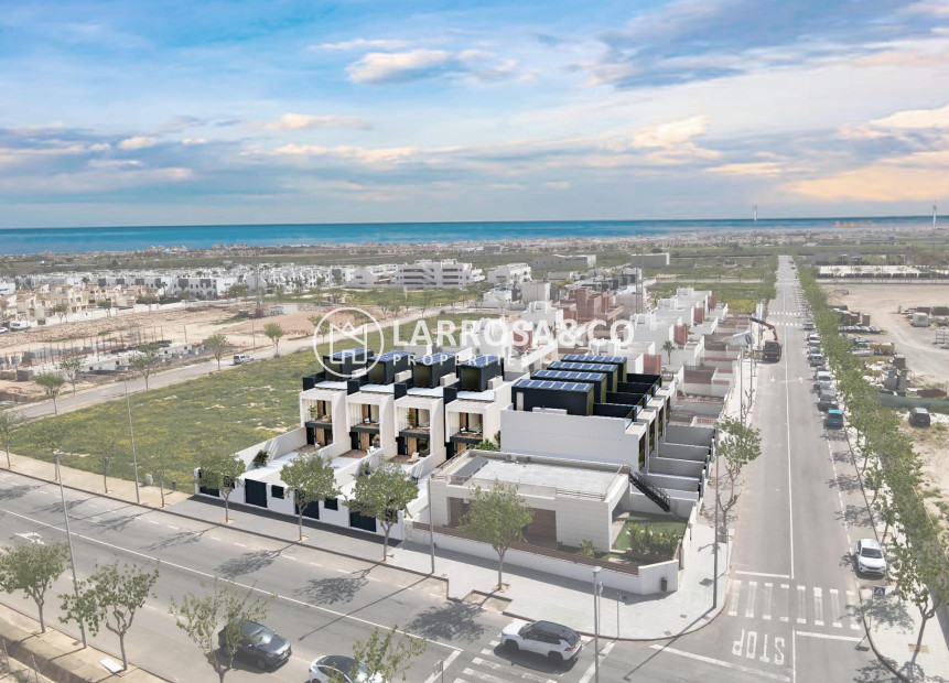 Maisons mitoyennes durables neuves à Pilar de la Horadada, Costa Blanca Maisons modernes avec technologie et efficacité énergétique Découvrez cette promotion exclusive de maisons neuves situées à Pilar de la Horadada, l'une des zones les plus attrayantes de la Costa Blanca Sud. Ce projet de maisons mitoyennes allie design contemporain, durabilité et technologie pour offrir un style de vie confortable, efficace et connecté. Le lotissement se compose de 8 villas mitoyennes de 3 chambres et 3 salles de bains, toutes avec piscine privée, solarium avec cuisine d'été et parking sur le terrain. De plus, l'une des maisons est livrée entièrement meublée et prête à emménager, avec 2 chambres et 2 salles de bains. Espaces intérieurs élégants et fonctionnels Chaque maison a été conçue avec le souci du détail : Cuisine entièrement équipée avec des appareils électroménagers Siemens ou similaires Salles de bains avec lavabos sur plan, robinetterie mitigeur et parois en verre de sécurité Pré-installation de la climatisation par conduits Système d'aérothermie pour l'eau chaude sanitaire Éclairage LED intérieur et extérieur, y compris bandes décoratives dans la cuisine, le salon et les salles de bains Les logements sont également équipés d'un système domotique pour le contrôle des volets, de l'éclairage extérieur, de la climatisation et de la piscine, ainsi que d'une installation photovoltaïque avec 6 panneaux solaires pour l'autoconsommation. Extérieurs privés et solarium avec cuisine d'été Profitez d'un vaste espace extérieur avec : Piscine privée avec douche et spots LED Jardin avec spots intégrés Solarium avec cuisine extérieure en aluminium, plan de travail et évier Tout est pensé pour que vous puissiez profiter du climat méditerranéen tout au long de l'année. Pilar de la Horadada : qualité de vie à quelques minutes de la mer Cette commune offre une excellente infrastructure, une vie locale animée et des plages Pavillon Bleu à seulement 2 km. Elle dispose également de pistes cyclables, de sentiers de randonnée et de nombreuses possibilités sportives. Distances clés : Plage de Torre de la Horadada : 2 km Camp de golf Lo Romero : 5 km Port de plaisance Torre de la Horadada : 3 km Centre commercial Zenia Boulevard : 15 km Aéroport de Murcie (Corvera) : 40 km Aéroport d'Alicante : 55 km Demandez des informations et planifiez votre visite C'est l'occasion d'acquérir une maison moderne et économe en énergie, proche de la mer, dans l'une des zones les plus prisées de la Costa Blanca. Contactez-nous dès aujourd'hui pour obtenir plus d'informations ou pour planifier une visite personnalisée.