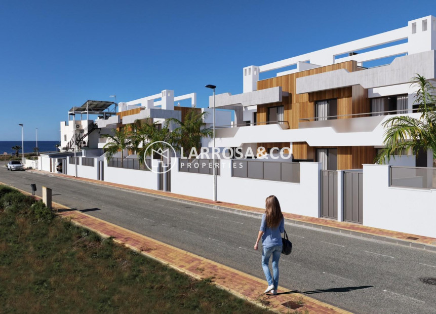 Maisons neuves à seulement 150 mètres de la plage à Puerto de Mazarrón Projet résidentiel exclusif près de Playa Negra Découvrez ce petit lotissement de seulement 8 maisons modernes situées à seulement 150 mètres de Playa Negra à Puerto de Mazarrón, dans la région de Murcie. Ce nouveau projet immobilier offre un mélange parfait entre vie côtière, intimité et confort contemporain, idéal pour vivre toute l'année ou passer des vacances. Profitez de la vue sur la mer, d'un environnement paisible et d'un accès facile à l'une des plus belles plages de la Costa Cálida. Le projet est situé dans un quartier résidentiel calme, à proximité de tous les services essentiels, notamment des supermarchés, des restaurants, des écoles et des centres médicaux. Types de propriétés et agencements Le projet propose un choix de maisons au rez-de-chaussée ou au dernier étage : Appartements au rez-de-chaussée : 3 chambres et 2 salles de bains avec jardins privés. Piscine privée disponible en option moyennant un supplément. Appartements au dernier étage : 2 chambres et 2 salles de bains avec grandes terrasses et solariums privés sur le toit, parfaits pour prendre le soleil et manger en plein air. Toutes les propriétés comprennent un débarras et une place de parking attribuée dans le garage souterrain. Caractéristiques modernes et finitions de haute qualité Ces maisons neuves sont conçues avec des matériaux haut de gamme et des détails bien pensés pour améliorer le confort et l'efficacité : Menuiserie extérieure en PVC avec double vitrage et chambre à air pour l'isolation Porte d'entrée renforcée Chauffage au sol électrique dans les salles de bains Cuisines entièrement équipées avec appareils électroménagers inclus Système de climatisation centralisé installé Piscine commune avec jardin paysager Préinstallation pour la télévision par satellite Emplacement privilégié à Puerto de Mazarrón Puerto de Mazarrón est l'une des destinations côtières les plus prisées de la région de Murcie, connue pour ses plages pittoresques, son port de plaisance animé et son atmosphère méditerranéenne détendue. La région offre un large éventail d'activités de plein air, de la voile et la plongée sous-marine à la randonnée et au cyclisme dans la Sierra de las Moreras toute proche. Distances vers les principaux points d'intérêt : Playa Negra : 150 mètres Port de Mazarrón : 2 km Cartagena : 35 km Ville de Murcie : 70 km Aéroport de Corvera (Murcie) : 45 km Terrains de golf (Camposol, Hacienda del Álamo) : 25-35 km Centre commercial Mazarrón Park : 5 km Faites de la côte votre nouveau chez-vous Ne manquez pas cette occasion rare d'acquérir une maison neuve près de la plage à Puerto de Mazarrón. Contactez-nous dès aujourd'hui pour en savoir plus ou pour visiter les logements disponibles et découvrir le style de vie méditerranéen.