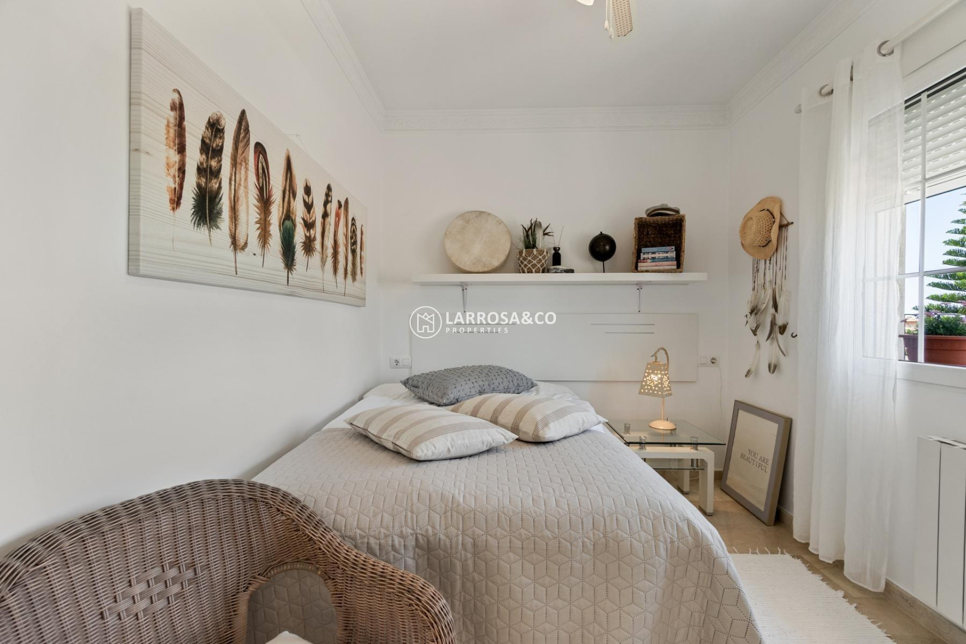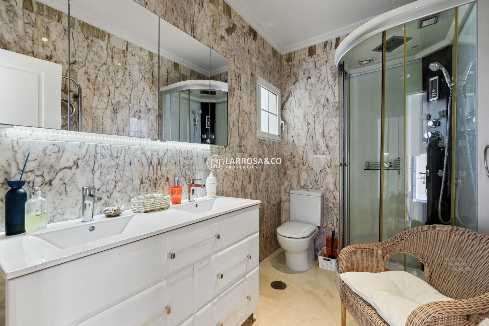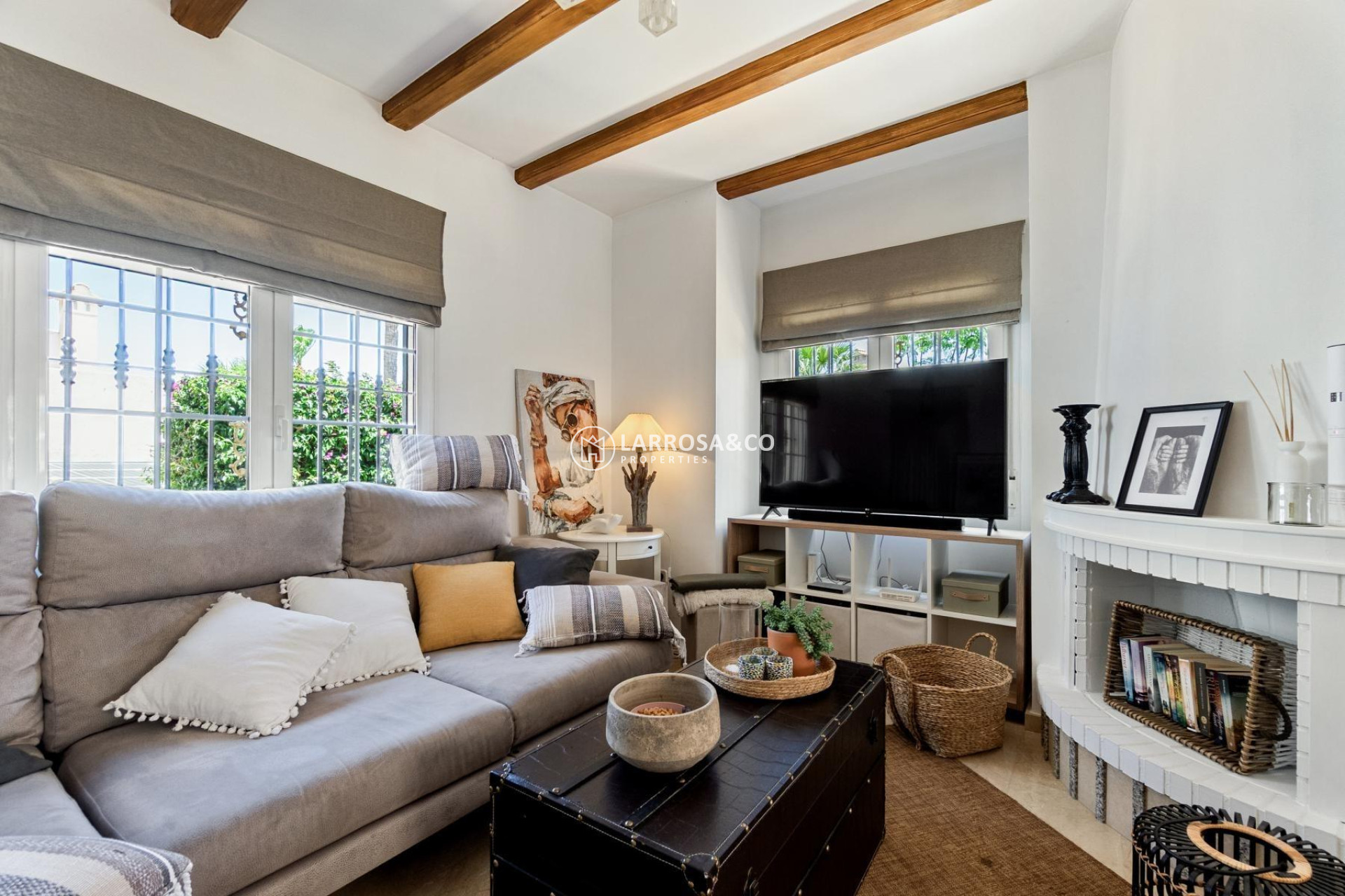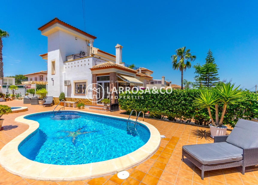 Découvrez ce charmant chalet indépendant avec des extérieurs de rêve pour en profiter toute l’année !~~Nous vous présentons cette magnifique maison située dans un quartier calme, bénéficiant d’un climat excellent qui permet de profiter pleinement de ses merveilleux espaces extérieurs 365 jours par an. Idéale comme résidence principale, pour de longs séjours ou comme maison de vacances.~~Répartie sur deux étages reliés par un escalier intérieur, la maison vous accueille avec une véranda chaleureuse qui s’ouvre sur un grand salon avec cheminée, parfait pour les réunions en famille. La cuisine américaine moderne, entièrement rénovée et équipée, s’intègre harmonieusement à l’espace de vie.~~Au rez-de-chaussée, vous trouverez également une grande buanderie avec sortie vers le jardin, deux chambres (dont une avec salle de bain en suite rénovée), une autre pièce vitrée avec accès direct au jardin, ainsi qu’un WC pour les invités.~~À l’étage supérieur se trouvent deux chambres supplémentaires, une salle de bain entièrement rénovée et un spectaculaire solarium avec espace chill-out offrant une vue dégagée sur la mer et la lagune.~~La maison dispose de la climatisation dans toutes les pièces, du chauffage central et d’un système d’osmose dans la cuisine, garantissant un confort optimal toute l’année.~~Mais ce qui séduit vraiment dans cette maison, ce sont ses espaces extérieurs. Un superbe jardin entoure toute la propriété, agrémenté d’arbres fruitiers, de plantes et de coins pleins de charme. Vous profiterez d’une piscine privée, parfaite pour l’été, d’une terrasse couverte avec cuisine d’été et barbecue, et, en touche finale, d’un coin détente avec pergola et store, idéal pour lire, se détendre ou savourer un café à tout moment de la journée.~~La propriété comprend également un garage fermé avec portail électrique et un espace supplémentaire pour garer un deuxième véhicule.~~Si vous recherchez qualité de vie, tranquillité et plaisir de vivre en extérieur toute l’année, cette maison est faite pour vous. Venez la visiter et laissez-vous séduire par son charme !~~~