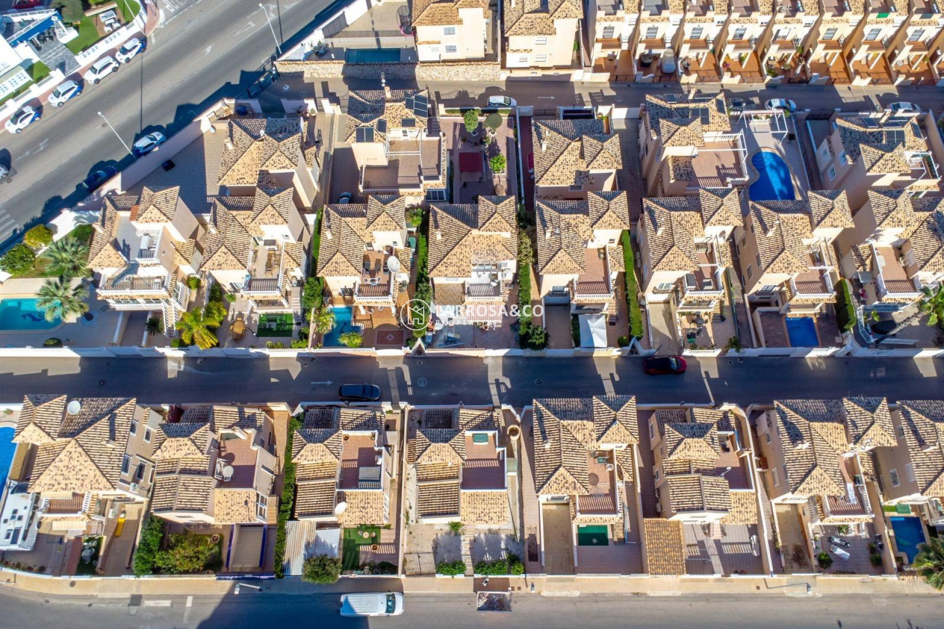 Cette villa individuelle de deux étages avec sous-sol offre une distribution confortable et polyvalente, reliée par un escalier intérieur. Au rez-de-chaussée, vous trouverez un vaste salon-salle à manger avec cheminée, ainsi qu’une cuisine indépendante rénovée et entièrement équipée. À ce niveau se trouvent également une salle de bains et une terrasse-porche chaleureuse idéale pour profiter de l’extérieur.~~L’étage supérieur abrite deux chambres, dont l’une avec accès à une terrasse privée ensoleillée avec vue lointaine sur la mer, ainsi qu’une salle de bains complète.~~Le sous-sol propose un espace exceptionnel : un garage transformé en zone de loisirs, comprenant une grande salle de jeux avec table de billard, un espace bar et une chambre supplémentaire. Cet espace peut facilement être reconverti à son usage initial.~~À l’extérieur, la maison dispose d’un parking privé, ainsi qu’une vaste terrasse-jardin avec gloriette, parfaite pour des moments en plein air. Son orientation plein sud assure une luminosité naturelle tout au long de la journée. La propriété est en excellent état et se vend entièrement meublée, avec électroménagers et climatisation dans toutes les pièces.~~Située dans le complexe fermé Royal Park à Los Altos (Orihuela Costa), la communauté offre une piscine exclusive pour les résidents. Emplacement idéal : proche de supermarchés, restaurants, bars, hôpital, écoles et centres commerciaux. Un choix parfait comme résidence familiale ou maison de vacances.~~Nous vous invitons à découvrir cette charmante villa. Contactez-nous pour fixer un rendez-vous et organiser une visite.~
