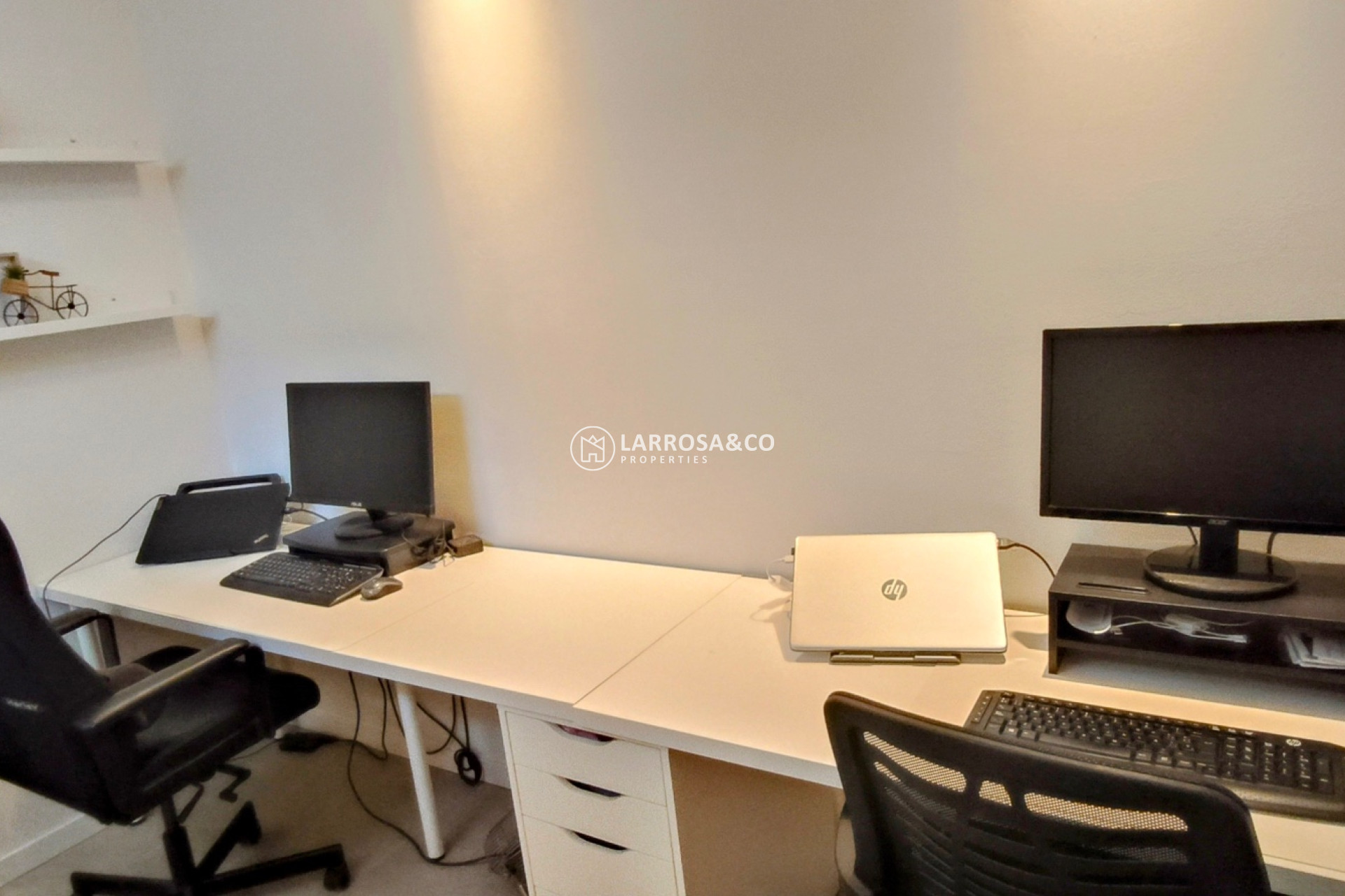 Nous vous invitons à découvrir cette maison jumelée moderne et familiale, située dans l'un des quartiers les plus prisés de Torrevieja. Cette élégante propriété est idéale pour ceux qui recherchent un style de vie confortable à proximité de la mer, avec tous les services et commodités essentiels à portée de main. D'une surface habitable de 190 m², la maison offre quatre pièces spacieuses, dont trois chambres, trois salles de bains et un bureau séparé, idéal pour le télétravail ou comme chambre d'amis supplémentaire. L'intérieur minimaliste est conçu avec le souci du détail, et la cuisine entièrement équipée saura satisfaire les résidents les plus exigeants. Un système de climatisation centralisé assure une température intérieure agréable, même pendant les journées les plus chaudes. La maison dispose de grandes fenêtres qui inondent l'intérieur de lumière naturelle et renforcent la sensation d'espace. Les propriétaires bénéficient également d'une généreuse terrasse de 153 m² et d'un spacieux garage pour deux voitures . La résidence fermée offre un accès à une piscine commune avec jacuzzi , un lieu idéal pour se détendre et discuter avec ses voisins. À proximité, vous trouverez des supermarchés, des écoles, des terrains de padel et d'autres services essentiels. Frais de communauté : 75€/mois