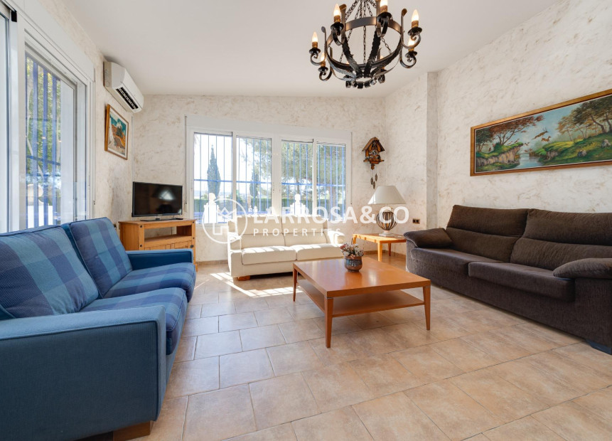 Mooi chalet gelegen tussen de charmante dorpen Benejuzar en Jacarilla, deze woning biedt meer dan 200m² verdeeld over één verdieping, waardoor het een ruime en comfortabele plek is om te wonen. Het huis heeft een grote woonkamer met open haard voor gezellige winteravonden, evenals een volledig uitgeruste aparte keuken. Met vier lichte slaapkamers and twee moderne complete badkamers, biedt deze residentie alle nodige faciliteiten voor het dagelijks leven. Het terrein rondom de woning beslaat meer dan achtduizend vierkanter meter gevuld met fruitbomen en indrukwekkende sierplanten die privacy and rust bieden. Daarnaast beschikt het ook overeen perfect uitgerust barbecuegedeelte naast eengezellig prieeltje ideaalvoor familiebijeenkomsten of informele bijeenkomsten in de buitenlucht.~DE PRIJS IS EXCLUSIEF KOSTEN EN BELASTINGEN~
