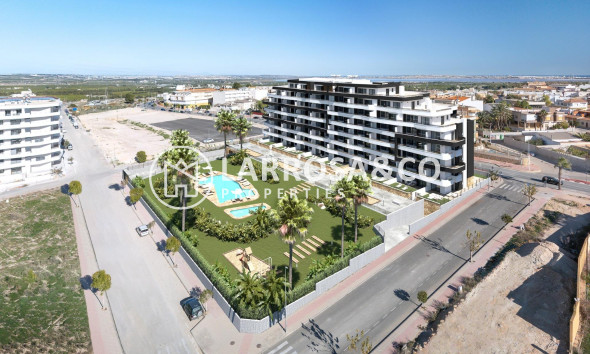 Nieuwbouwproject in San Miguel de Salinas op een steenworp afstand van het stadscentrum Ruime appartementen met indrukwekkende voorzieningen Dit nieuw gebouwde wooncomplex in San Miguel de Salinas biedt moderne flats met 2 slaapkamers en ruime terrassen, zorgvuldig verdeeld over zeven verdiepingen. De omheinde gemeenschap biedt eersteklas faciliteiten, waaronder aparte zwembaden voor volwassenen en kinderen, weelderige groene zones, een kinderspeelplaats en een petanqueterrein. Bevoorrechte locatie aan de Costa Blanca Deze urbanisatie ligt in het charmante stadje San Miguel de Salinas, op een strategische locatie aan de Costa Blanca. Het ligt op loopafstand van het stadscentrum, waar je alle essentiële voorzieningen voor het dagelijks leven vindt, waaronder winkels, restaurants en gezondheidscentra. De woning ligt op korte rijafstand van verschillende bezienswaardigheden: Golfbanen Las Colinas en Campoamor: op slechts 7 km afstand, perfect voor golfliefhebbers. Stranden van Orihuela Costa en Torrevieja: Gelegen op ongeveer 10 km van de residentie, met prachtige zandstranden. Winkelcentra: Zenia Boulevard, een populaire winkelbestemming, ligt op slechts 9 km afstand. Vliegveld Alicante: Op 50 km afstand. Luchthaven Murcia Corvera: Op ongeveer 55 km afstand, ideaal voor regionale verbindingen. Hoogwaardige specificaties Elk appartement is ontworpen met moderne afwerking en functionaliteit in het achterhoofd: Volledig ingerichte keukens met apparatuur inbegrepen. Gemotoriseerde rolluiken. Beveiligde toegangsdeur. Warm water door aerothermische verwarming. Volledig geïnstalleerde airconditioning. LAUNCH AANBIEDING: Meubilair pakket inbegrepen voor de eerste eenheden verkocht. Bovendien hebben alle appartementen een eigen parkeerplaats. Over San Miguel de Salinas San Miguel de Salinas is een pittoreske gemeente in de regio Vega Baja del Segura, onderdeel van de bruisende Valenciaanse Gemeenschap. Het dorp ligt dicht bij de grens met Murcia en biedt een prachtig uitzicht op de lagunes van Torrevieja en La Mata, evenals een rustige, familiale sfeer. Je nieuwe huis wacht Of je nu op zoek bent naar een vakantieverblijf of een permanente verblijfplaats, dit nieuwe project in San Miguel de Salinas combineert luxe, comfort en een onovertroffen locatie. Neem vandaag nog contact met ons op voor een bezichtiging en zet de eerste stap naar je droomhuis aan de Costa Blanca.