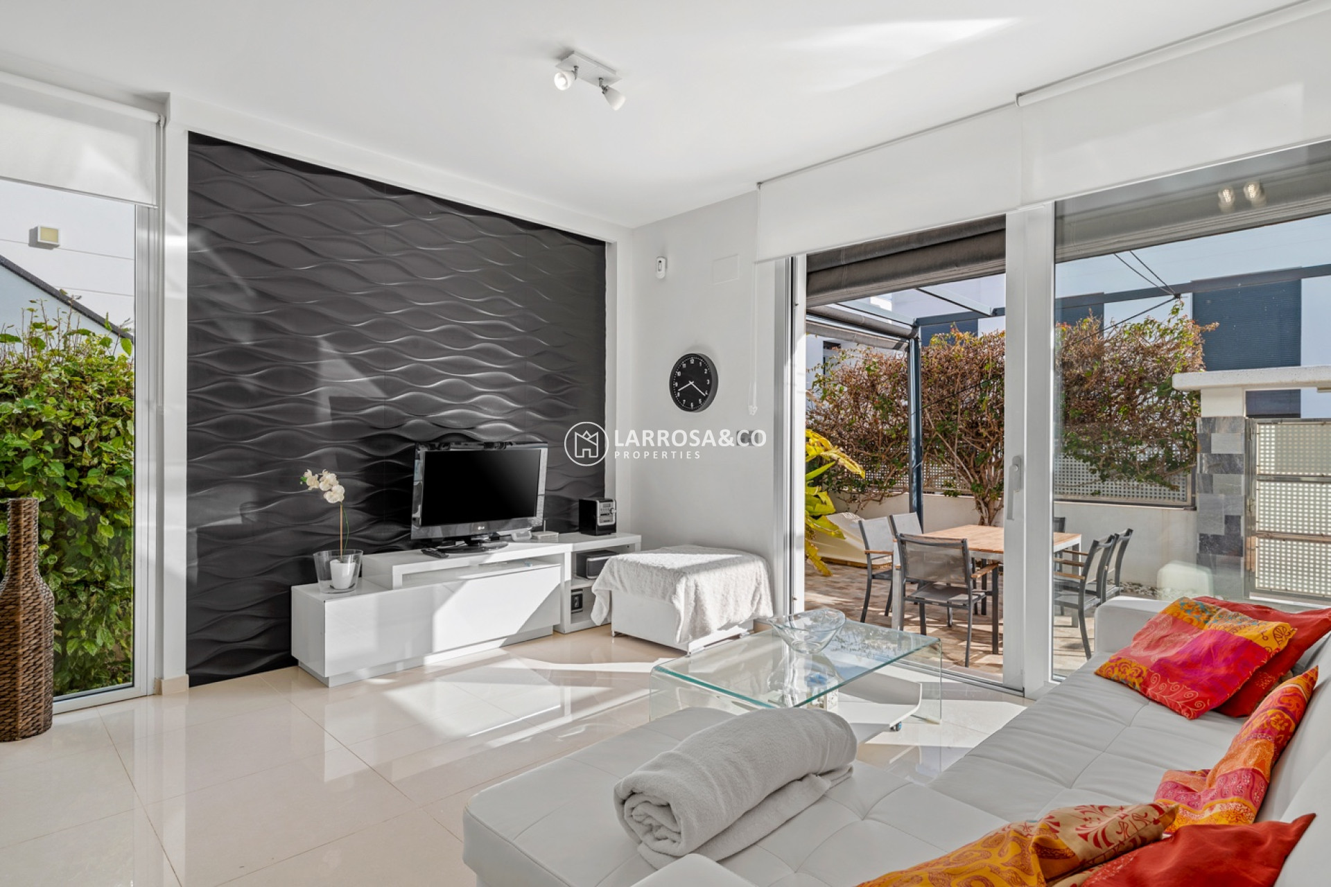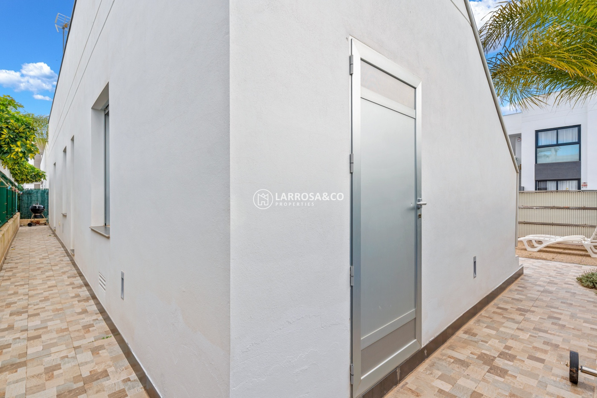 Ontdek deze charmante en uitnodigende gelijkvloerse woning, gebouwd in 2014, ideaal voor permanent wonen, als tweede huis of als investeringsobject dankzij de toeristenvergunning. De woning biedt 90 m² woonruimte op een perceel van 230 m² en combineert perfect comfort binnen met buitenruimte om optimaal te genieten van het mediterrane klimaat. De woning beschikt over drie slaapkamers en twee badkamers, waarvan de master suite een eigen badkamer heeft en een groot raam met uitzicht op het zwembad, waardoor er gedurende een groot deel van de dag fantastisch natuurlijk licht binnenvalt. Buiten betovert de woning met een privétuin van 73 m², een perfecte plek om te ontspannen, te zonnebaden, te dineren met vrienden of een chill-outzone te creëren. De woning beschikt tevens over een privézwembad, een ware luxe om af te koelen en te genieten van volledige privacy. Het huis is ontworpen met comfort in gedachten en beschikt over zonneschermen en twee aluminium pergola's: één op het hoofdterras, ideaal om in de schaduw buiten te dineren, en een andere op het solarium, een bevoorrechte plek om het hele jaar door van de zon te genieten, te lezen, een drankje te drinken bij zonsondergang of gewoon te ontspannen. Een ander groot voordeel is de ligging op het zuiden, wat zorgt voor veel natuurlijk licht en een warme, uitnodigende sfeer gedurende de hele dag. Er is ook parkeergelegenheid op eigen terrein, wat zorgt voor gemak en veiligheid. Gelegen in een gunstig gelegen en goed bereikbare buurt, op slechts 5 minuten lopen van de dichtstbijzijnde supermarkt en op slechts 10 minuten rijden van het strand van Guardamar, een van de meest gewaardeerde stranden vanwege de uitgestrekte zandstranden en de natuurlijke omgeving. Deze woning heeft het allemaal: privacy, natuurlijk licht, buitenruimtes, een zwembad, een solarium en een uitstekende locatie, klaar om vanaf de eerste dag van te genieten.