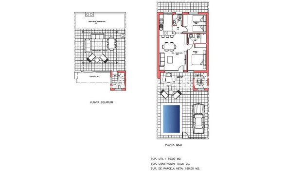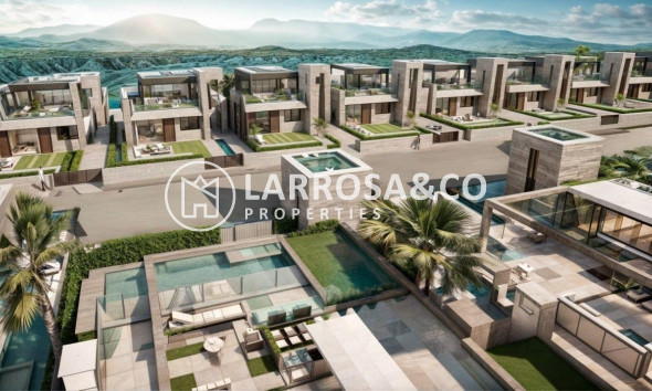 Newly built residential development of villas and townhouses in Fuente Álamo, Murcia. This location offers an exceptional natural environment, far from the hustle and bustle of big cities and the tourist pressure of the coast. Furthermore, we are committed to working from a sustainable development perspective, minimising our environmental impact and maximising integration with the local community. Here, your dreams of a peaceful and sustainable lifestyle become a reality. Imagine waking up every morning in a stunning natural setting, surrounded by peaceful landscapes and the unique beauty of the Murcian countryside. This development prioritises energy efficiency, the use of environmentally friendly materials and harmonious integration with the rural environment. From the design of the property to the planning of the development, we strive to reduce our carbon footprint and promote responsible practices in all our operations. Full ducted air conditioning, hot/cold. Video intercom system. Colour-lacquered security access door with lock and anti-vandal security fittings. Cupboards with storage space, lined inside, lacquered in white. Kitchen furniture with appliances included. Hot water by aerothermal energy. Electric blinds. Pergolas in solariums. Private 2.5x4.5m swimming pool with underwater night lighting and salt chlorination system. Pre-installation for outdoor kitchen/jacuzzi in solarium. Fuente Álamo de Murcia is a town and municipality in the Region of Murcia, in southern Spain. It is located 22 km northwest of Cartagena and 35 km southwest of Murcia. The town is located in the Mar Menor basin, surrounded by the Algarrobo, Los Gómez, Los Victorias and Carrascoy mountain ranges. The water from these mountains flows down into the Rambla de Fuente Álamo and then into the Mar Menor. Fuente Álamo is 30 minutes from Murcia - Corvera airport. Nearest shops 6 km away.