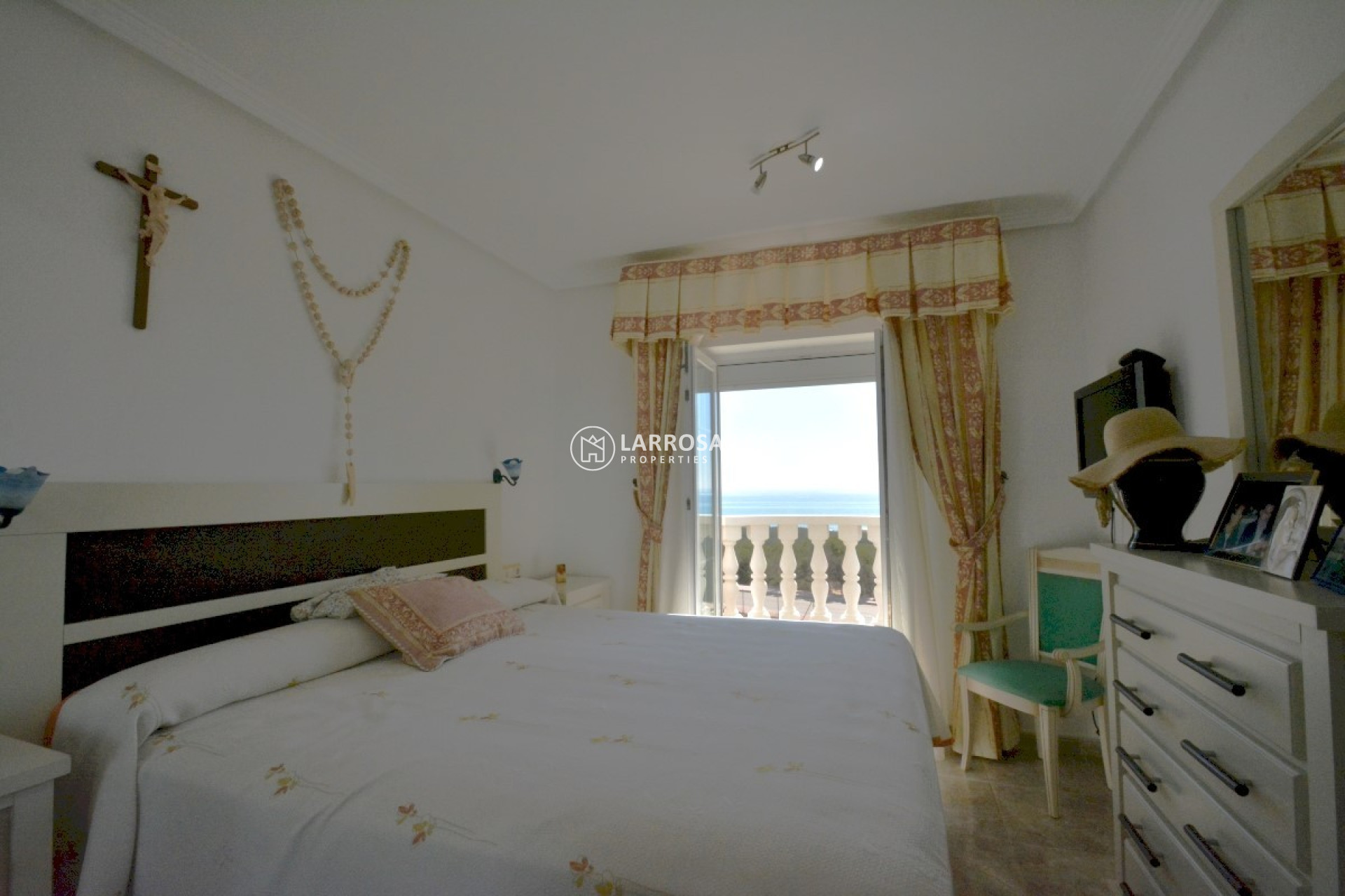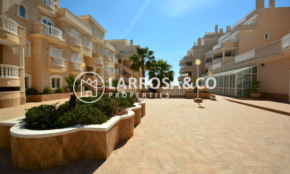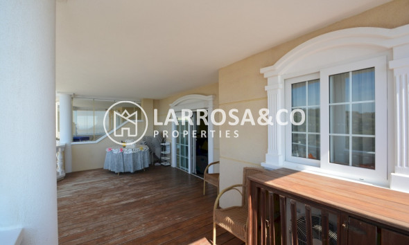 Situated in the prestigious Campomar urbanization of Guardamar del Segura, this elegant apartment combines luxurious living with unbeatable sea views. With 101 m² of living space, the home features three spacious bedrooms and two bathrooms, all outfitted with built-in wardrobes for a streamlined and sophisticated look.