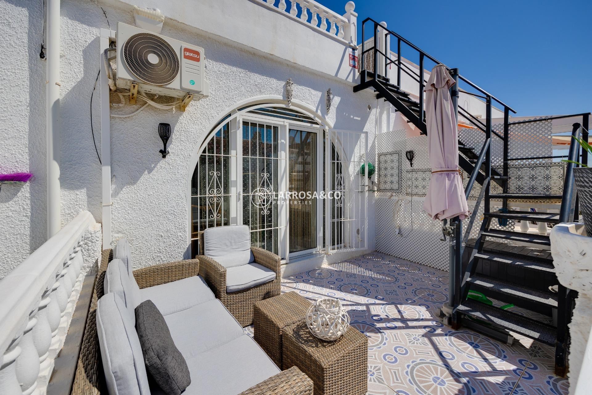 Discover this charming two-storey bungalow in the peaceful area of San Luis, Torrevieja. Just a ten-minute drive from the stunning beaches and with all services within reach, this property is a perfect oasis to enjoy the Mediterranean sun.~~It is distributed over two floors:~~On the ground floor, you are welcomed by a beautiful porch leading into a bright living-dining room connected to a fully equipped open kitchen; it also features a cozy double bedroom and a full bathroom—ideal for guests.~~The first floor has independent exterior access: perfect as an additional residence or guest studio. Enjoy the outdoors on its spacious sunny terrace or make use of the extra space by renting it out! This bungalow is not only your dream home but also an excellent real estate investment.~~Don’t wait any longer! Contact us today if you’re interested.~
