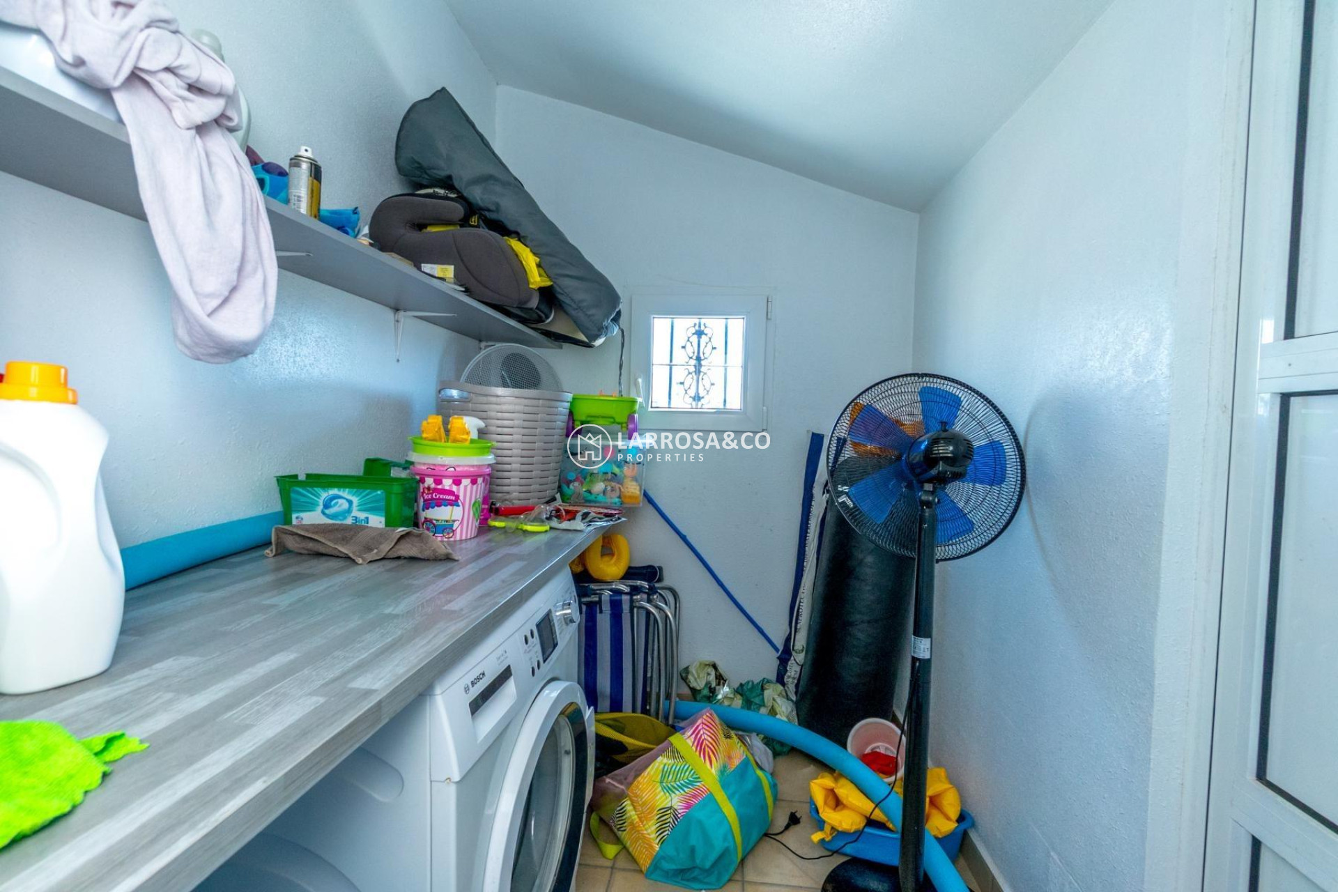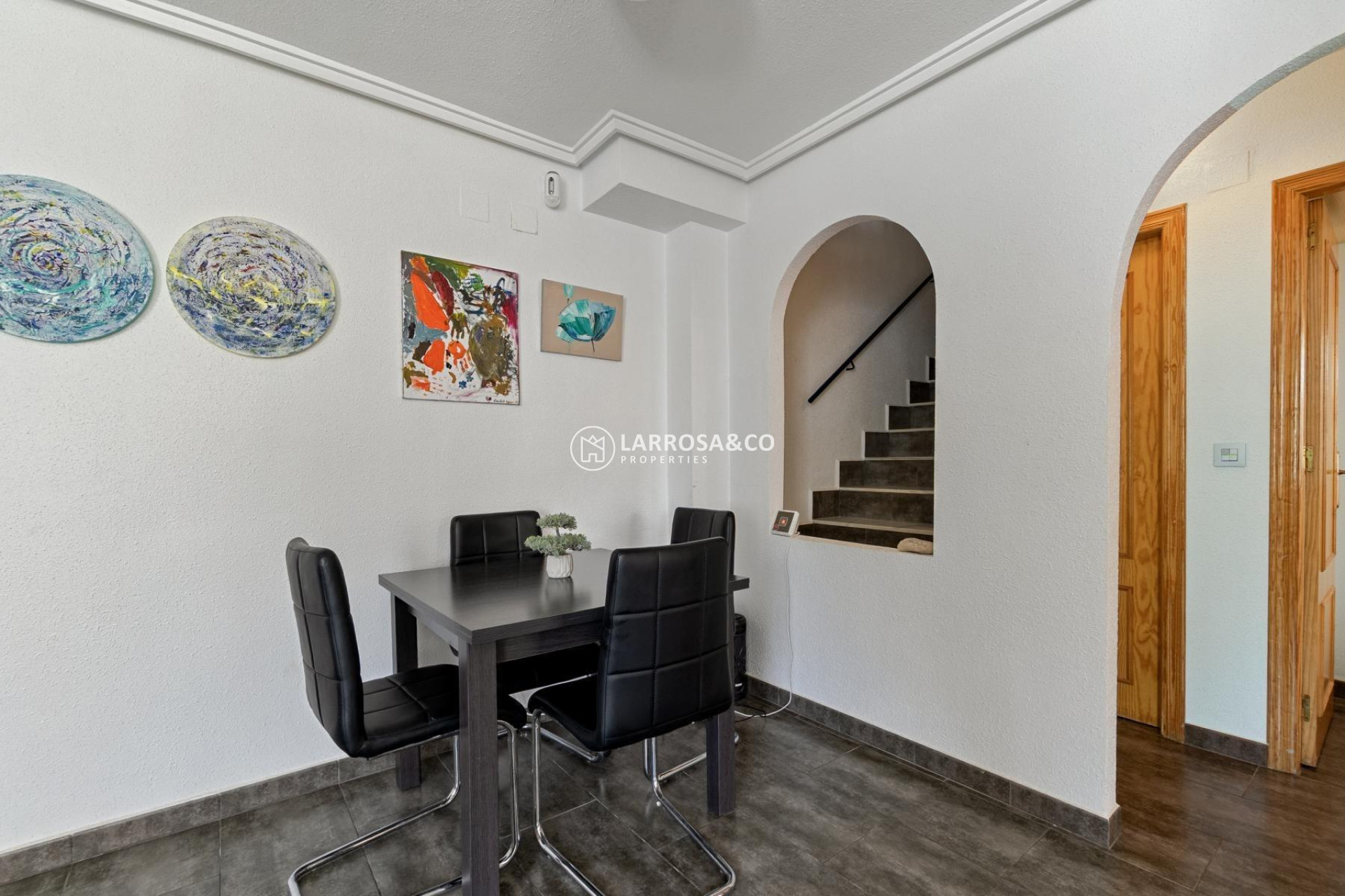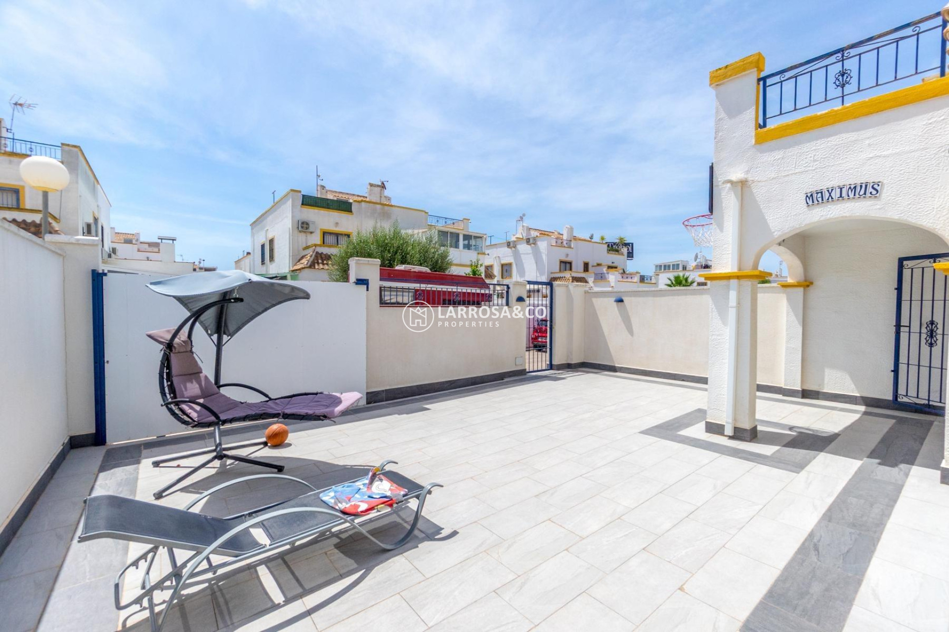 Opportunity in Jardín del Mar, Torrevieja – South-facing townhouse ready to enjoy~~For sale: beautiful Quad-style townhouse in the Jardín del Mar residential complex in Torrevieja, a highly sought-after and quiet area, perfect for year-round living or holiday enjoyment. The house is in very good condition, with recent upgrades including new flooring throughout both the interior and exterior, and renovated bathrooms now equipped with underfloor heating, providing extra comfort and warmth during winter. Its south-facing orientation ensures abundant natural light all day long.~~The property is distributed over two floors, plus a private roof terrace, and also features a spacious basement with multiple possibilities—ideal for use as storage, a playroom, office, or home gym.~~On the ground floor, there is a bright living-dining room, a fully equipped independent kitchen, one bedroom, and a full bathroom with shower. On the upper floor, you’ll find two large bedrooms—one with access to a terrace perfect for relaxing—and a second renovated full bathroom. From this floor, an interior staircase leads to the roof terrace with open views, ideal for sunbathing all year round, where the laundry room is also located.~~Outside, the home offers a large private garden with a porch and parking space within the plot, as well as an outdoor dining area with a pergola—perfect for al fresco meals with family and friends. The residential complex includes a communal pool and green areas.~~Located in one of Torrevieja’s most in-demand areas, close to supermarkets, shopping centers like Habaneras and Carrefour, restaurants, bars, hospitals, cinema and public transport. Also near the greenway, bike paths, and pedestrian routes, with easy access to the beaches and the city center.~~Sold furnished and with appliances included—ready to move into with no major renovations needed. Perfect for those seeking comfort, sun, and a prime location on the Costa Blanca.~~Don’t miss this opportunity—contact us and book your viewing today.~~~