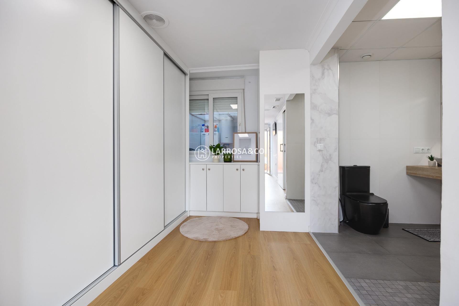 Discover this magnificent and spacious apartment, located right in the heart of Torrevieja, with all amenities at street level and just 700 meters from the sea and the iconic promenade. A privileged location to enjoy the Mediterranean lifestyle without sacrificing comfort. The property has been fully renovated using high-quality materials and is situated on the first floor of a building with an elevator. It offers a modern, functional, and elegant layout designed for maximum comfort. Upon entering, you are welcomed by a spacious and bright living-dining area with access to a charming terrace, perfect for enjoying a fresh and pleasant atmosphere. The fully equipped open-plan kitchen with breakfast bar connects to an interior patio with a laundry area, adding everyday practicality. The apartment features 3 spacious double bedrooms and 2 full bathrooms. The master bedroom, with en-suite bathroom, stands out for its walk-in wardrobe, private bathroom, and access to a rear terrace with south-facing orientation, flooding the home with natural light. This terrace is ideal for relaxing and enjoying the Mediterranean climate and also includes a storage area providing valuable extra space. 🔑 A rare added value: the price includes two parking spaces in the same building, a true luxury in such a central location. An exclusive property, ready to move into. Don’t miss this opportunity!