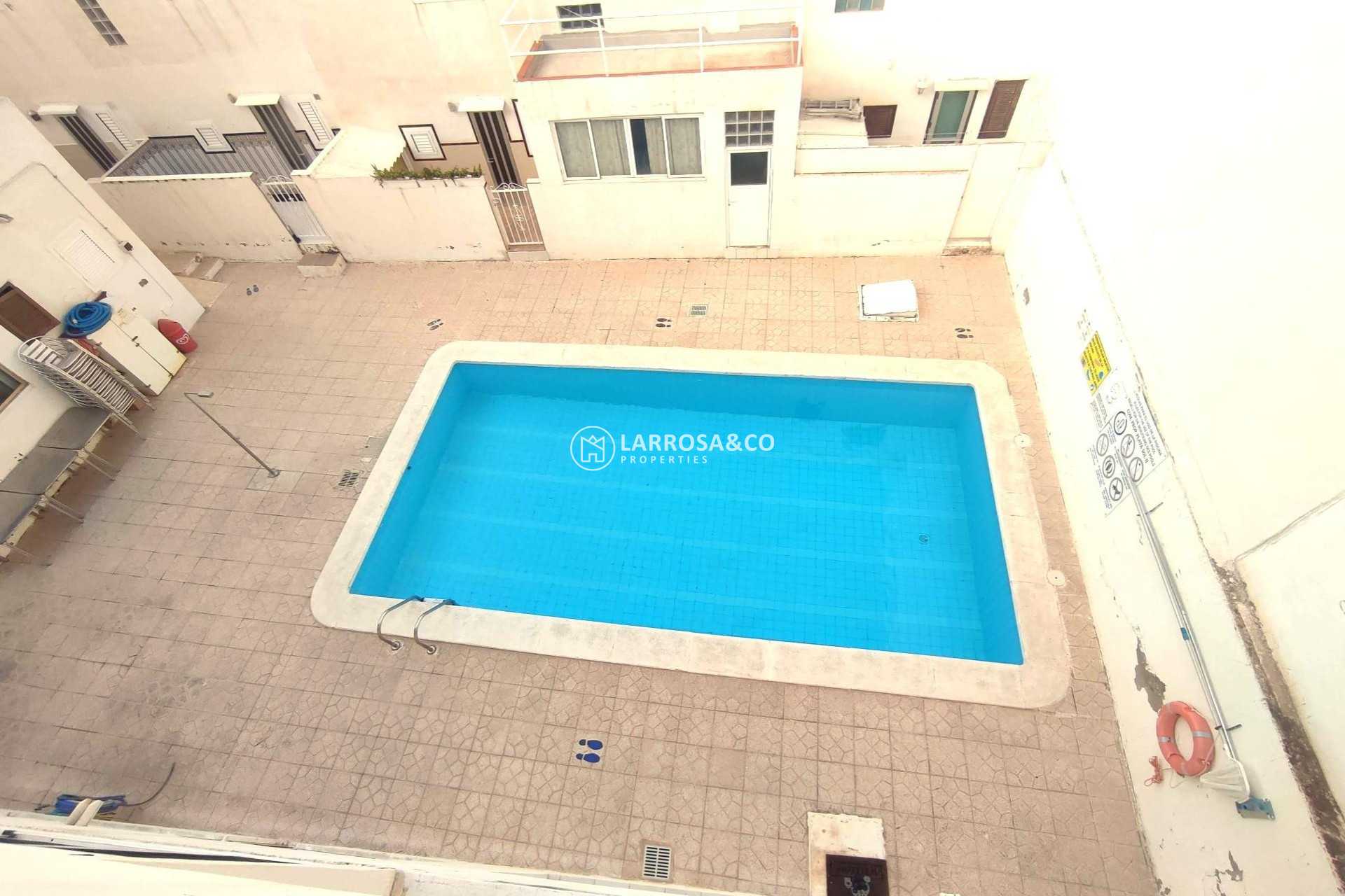 Замечательный бунгало на верхнем этаже в PLAYA DE LOS LOCOS с солярием, террасой и общим бассейном в 530 м от пляжа.~В доме две спальни со встроенными шкафами, одна ванная комната, кухня открытого плана и просторная гостиная с выходом на террасу. Также есть патио, откуда виден общий бассейн. С террасы есть выход на красивую террасу SOLÁRIUM, идеальную для отдыха, принятия солнечных ванн..... Дом продается с мебелью, кондиционером и дополнительным местом в гараже за 10.000€.~~Дом очень светлый и просторный с уникальным расположением рядом с удобствами, пляжем..... Идеально подходит для круглогодичного проживания или отдыха на побережье. ~~Если вы хотите посетить дом, позвоните нам, и мы будем рады помочь вам осуществить вашу мечту.~~НАЛОГИ И СБОРЫ НЕ ВКЛЮЧЕНЫ. Юридическое уведомление: описанная информация носит исключительно ознакомительный характер, не является обязательной и может содержать ошибки.~