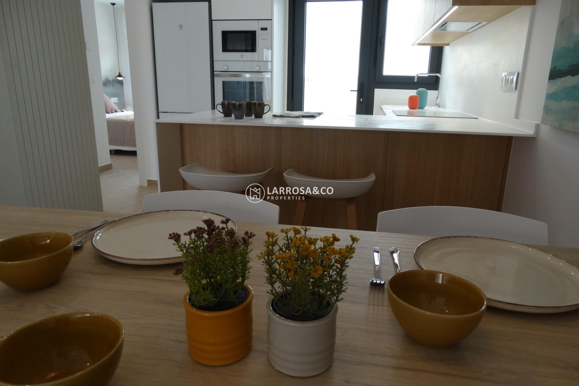 Новые бунгало с солярием или садом в Пилар-де-ла-Орадада Современный жилой комплекс на южном побережье Коста-Бланка Расположенный в очаровательном городке Пилар-де-ла-Орадада, этот новый жилой комплекс из бунгало предлагает комфортный средиземноморский образ жизни в одном из самых привлекательных районов побережья Коста-Бланка. Пилар-де-ла-Орадада известен своей гостеприимной атмосферой, прекрасным климатом и обширными песчаными пляжами, такими как Лас-Игерикас и Миль-Пальмерас, которые идеально подходят для семейного отдыха или занятий водными видами спорта. Планировка и типы домов Комплекс состоит из 28 современных бунгало с 2 и 3 спальнями, расположенных на: Первых этажах с частным садом Верхних этажах с частным солярием и выделенным кладовым помещением Многие дома ориентированы на юг, что гарантирует отличное освещение и вид на общий бассейн или прилегающий парк. Функциональные и хорошо оборудованные помещения Каждый дом был спроектирован с просторными и функциональными помещениями: Встроенная американская кухня с просторной гостиной-столовой Встроенные шкафы Частная терраса в каждой квартире Парковочное место включено Кроме того, дома оснащены: Горячая вода с помощью аэротермической системы Предварительная установка кондиционера Наружная столярка из ПВХ с двойными стеклами и алюминиевыми жалюзи Ванная мебель включена Общие зоны и природное окружение Жилой комплекс включает общий бассейн, окруженный зелеными насаждениями, идеально подходящий для наслаждения солнцем и спокойствием. Всего в 4 км от пляжа Плайя-де-лас-Игуэрикас, до которого можно легко добраться пешком или на велосипеде по приятной набережной, соединяющей комплекс с морем. Отличное расположение и транспортная доступность Расположение жилого комплекса позволяет легко добраться до всех видов услуг и достопримечательностей: Супермаркеты, магазины, бары и рестораны менее чем в 1 км Поля для гольфа, такие как Lo Romero, в 6 км Торговый центр Dos Mares в 11 км Пляжи Миль Пальмерас и Торре-де-ла-Орадада всего в 5 минутах Аэропорт Мурсии (Корвера) в 40 км Аэропорт Аликанте в 65 км Ваша новая жизнь под солнцем Этот жилой комплекс в Пилар-де-ла-Орадада представляет собой отличную возможность насладиться средиземноморской жизнью в современном доме с удобным расположением. Свяжитесь с нами сегодня, чтобы получить дополнительную информацию или договориться о посещении и сделать шаг к своему новому дому на побережье Коста-Бланка.