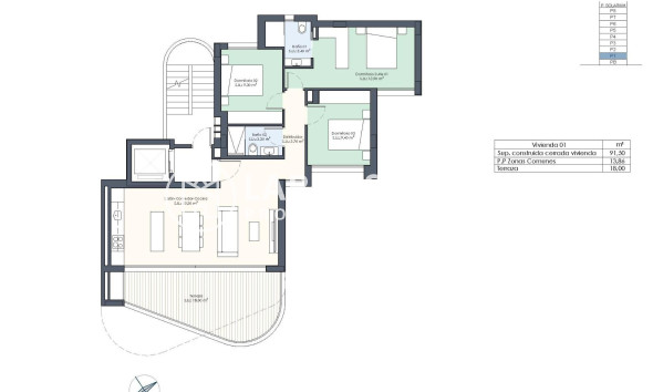 Каждая квартира имеет 3 спальни и 2 ванные комнаты, а также просторные открытые пространства: