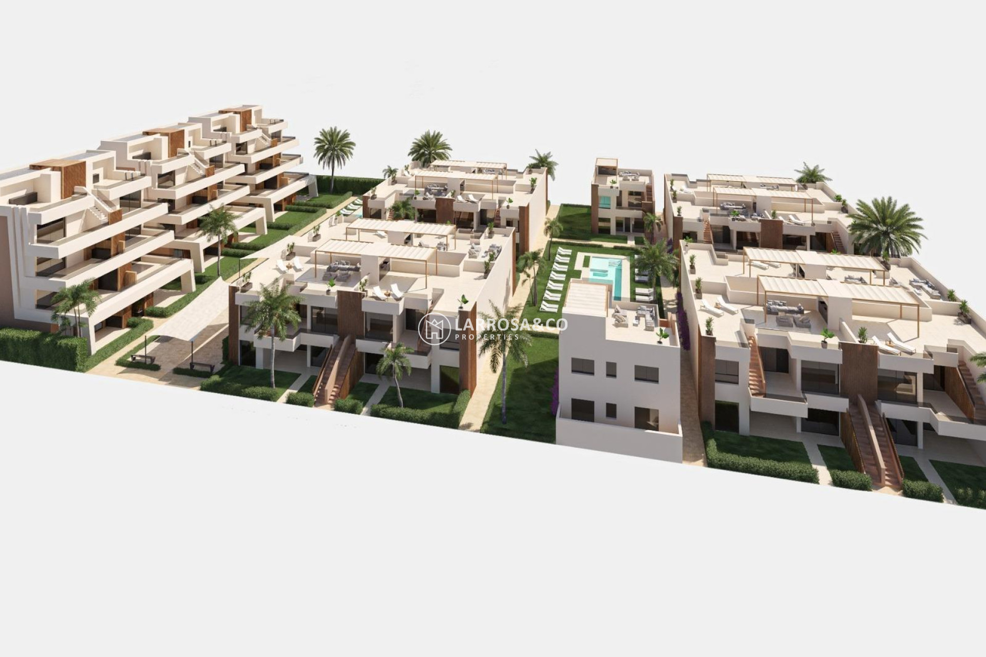 Новые апартаменты, бунгало и виллы в гольф-курорте Condado de Alhama, Мурсия Современные дома рядом с гольф-полем и природой Добро пожаловать в новый жилой комплекс, состоящий из бунгало, апартаментов, пентхаусов и отдельно стоящих вилл, расположенный в престижном гольф-курорте Condado de Alhama, в регионе Мурсия. Этот частный курорт предлагает круглосуточную охрану, красивые ландшафтные сады и прямой доступ к гольф-полю, спроектированному Джеком Никлаусом, что делает его идеальным местом для любителей гольфа и семей, ищущих спокойной средиземноморской жизни. Комплекс расположен в нескольких минутах ходьбы от торгового центра Al Kassar, поэтому жители могут легко добраться до магазинов, ресторанов, баров и всех необходимых услуг курорта. Современный дизайн и высокое качество строительства Комплекс предлагает бунгало с 2 или 3 спальнями и 2 ванными комнатами, доступные в двух вариантах: Бунгало на первом этаже с садом спереди и патио сзади. Некоторые дома также имеют частную парковку в саду. Бунгало на верхнем этаже с частной верандой и просторным солярием на крыше, откуда открывается потрясающий вид на поле для гольфа и окружающие горы. Все дома построены в соответствии с высокими стандартами качества и включают: Встроенная кухня с холодильником, духовкой, микроволновой печью, вытяжкой и посудомоечной машиной Предварительная установка канального кондиционера в гостиной и спальнях Современные ванные комнаты с душевыми перегородками, туалетными столиками, зеркалами и потолочными точечными светильниками Встроенные шкафы с ящиками и полками Аэротермальная система водонагрева Электрические алюминиевые жалюзи в спальнях Усиленная входная дверь Летняя кухня на открытом воздухе в бунгало на верхнем этаже Внутреннее и наружное освещение (кроме декоративных ламп) Телевизионные и телефонные розетки во всех комнатах Курортный образ жизни в окружении природы Condado de Alhama — это безопасный, устоявшийся курорт, окруженный природой и горами, идеально подходящий для жизни на свежем воздухе. Жители имеют доступ к общественному бассейну с зоной для загара, средиземноморским и тропическим садам, а также множеству пешеходных и велосипедных маршрутов на территории комплекса. Отличный доступ к ключевым местам Международный аэропорт Мурсии (Корвера): 40 км Пляжи Мазаррона: 25 км Центр города Мурсия: 35 км Город Альхама-де-Мурсия: 15 км Обеспечьте себе новый дом на побережье Коста-Калида Если вы ищете место для отдыха, круглогодичного проживания или инвестиций, этот комплекс предлагает идеальное сочетание современного дизайна, комфорта и удобного расположения. Свяжитесь с нами сегодня, чтобы запланировать визит и найти свою идеальную недвижимость в Condado de Alhama Golf Resort.