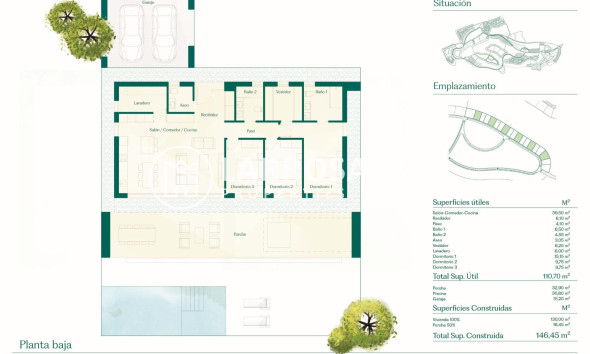 Эксклюзивные виллы на первой линии поля для гольфа в Хасиенда-дель-Аламо, Коста-Калида Современные виллы в одном из лучших гольф-курортов Испании Откройте для себя уникальную возможность стать владельцем роскошной виллы новой постройки на первой линии гольф-курорта Hacienda del Álamo, расположенного между историческими городами Картахена и Мурсия, в самом сердце Коста-Кальида. Эти современные виллы, спроектированные с учетом комфорта, уединения и элегантности, находятся в исключительной гольф- и развлекательной зоне. Каждая вилла имеет просторную планировку с 3 спальнями, 2 ванными комнатами и гостевым туалетом, одно- или двухэтажную конструкцию, в зависимости от выбранной модели. Благодаря большим участкам площадью от 700 квадратных метров и застроенной площади 146 квадратных метров, эти дома предоставляют достаточно места как для внутренней, так и для внешней жизни. Высококачественные материалы и отделка Эти виллы на первой линии оснащены современными удобствами для обеспечения максимального комфорта и стиля, в том числе: Частный бассейн и ландшафтный сад с системой капельного орошения Полностью оборудованная кухня с мебелью и бытовой техникой Кондиционер по всему дому Ванные комнаты с мебелью, зеркалами и душевыми перегородками Алюминиевые окна с теплоизоляцией и двойным остеклением Доступ к большому общественному бассейну с натуральным газоном и детской зоной Роскошная жизнь в гольф-курорте Hacienda del Álamo Hacienda del Álamo славится как один из лучших гольф-курортов Испании, предлагающий жителям расслабляющий образ жизни, спорт и удобства. 18-луночное поле для гольфа и академия Спортивные сооружения, включая теннис, паддл-теннис, тренажерный зал и фитнес-классы Главный клуб с панорамным видом, рестораном средиземноморской кухни и солнечными террасами 4-звездочный отель и спа для отдыха и оздоровления Семейные зоны, включая детские игровые площадки, бассейны и велосипедные дорожки Традиционная испанская деревня с магазинами, кафе и новыми ресторанами, которые скоро откроются Стратегическое расположение с отличным транспортным сообщением Аэропорт Корвера (Мурсия): 18 км (около 15 минут) Картахена: 36 км Центр города Мурсия: 40 км Пляжи Мар Менор: 28 км Торговые центры (Dos Mares, Espacio Mediterráneo): в пределах 30 км Ваш дом мечты рядом с полем для гольфа ждет вас Если вы ищете постоянное место жительства, место для отдыха или выгодное вложение средств на побережье Коста-Кальида, эти виллы на первой линии поля для гольфа в Hacienda del Álamo — идеальный вариант. Свяжитесь с нами сегодня, чтобы узнать больше или организовать индивидуальную экскурсию.