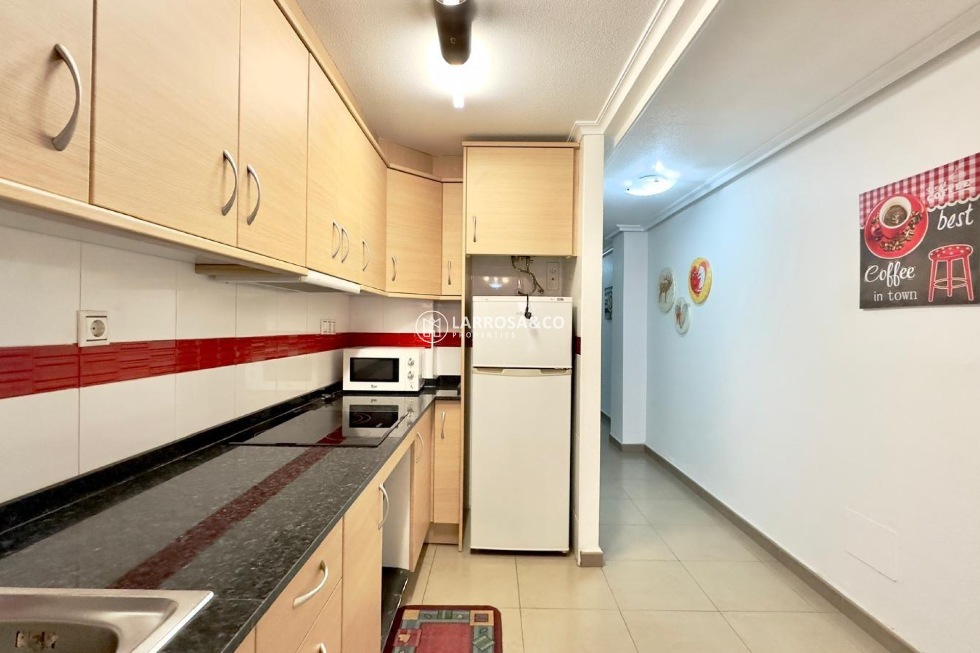 Уютная и функциональная квартира с 2 спальнями и 1 ванной комнатой на одной из самых центральных и востребованных улиц Торревьехи, известной улицей Калле Аполо, в нескольких минутах ходьбы от пляжа и в окружении всех удобств круглый год. Окружение и расположение Жизнь на улице Калле Аполо означает наслаждение аутентичным сердцем Торревьехи, в хорошо развитом городском районе с развитой транспортной инфраструктурой и широким выбором магазинов, супермаркетов, банков, кафе и ресторанов всего в нескольких шагах от вашей двери. Главные торговые улицы, такие как улицы рядом с набережной и площадью Конституции, находятся всего в нескольких минутах ходьбы, что позволяет вам совершать повседневные дела без необходимости в автомобиле. Пляж Плайя-дель-Кура и пристань для яхт также находятся в нескольких минутах ходьбы, что делает эту квартиру идеальным вариантом для тех, кто хочет сочетать городскую жизнь с близостью к морю на побережье Коста-Бланка. Здание и жилая атмосфера Квартира расположена в современном здании, типичном для центра Торревьехи, с ухоженным входом и преимущественно жилой атмосферой, где бок о бок живут семьи и молодые пары, а также иностранные жители, выбравшие город за его климат и качество жизни. Улица Аполо состоит из многоэтажных жилых домов с магазинами на первом этаже и квартирами на верхних этажах, создавая оживленную атмосферу днем и спокойную ночью, идеально подходящую для постоянного проживания или в качестве второго дома. Это ровная, удобная для пеших прогулок территория с мощеными улицами и упорядоченной городской планировкой, облегчающая передвижение людей всех возрастов и делающая ежедневные поездки комфортными и приятными прогулками. Внутренняя планировка При входе в квартиру фойе ведет в гостиную, где гостиная-столовая расположена вокруг кухни открытой планировки, создавая единое просторное и практичное пространство, максимально использующее доступное пространство. Планировка естественным образом отделяет общественную зону квартиры от спальной зоны, где расположены две спальни и ванная комната, обеспечивая приватность для семей или тех, кто хочет совмещать жизнь и работу удаленно. Дизайн интерьера следует концепции функциональной городской квартиры с узкими коридорами и хорошо спланированными комнатами. Пропорциональность, разработанная для обеспечения комфорта в повседневном использовании без ущерба для отдельных зон отдыха и развлечений. Гостиная-столовая Гостиная-столовая — это сердце дома, светлое пространство, получающее естественный свет с балкона и идеально подходящее как для отдыха, так и для встреч с друзьями и семьей. Ее прямоугольная планировка позволяет разместить удобный диван напротив телевизора, а также обеденный стол на несколько человек, создавая универсальное пространство, которое адаптируется к различным стилям оформления, от самого современного до средиземноморского. Прямая визуальная связь с кухней открытой планировки и выход на балкон усиливают ощущение простора, делая это пространство естественным местом, где протекает повседневная жизнь, от неспешных завтраков до более приятных вечеров в компании. Оборудованная кухня открытой планировки В доме имеется оборудованная кухня открытой планировки, которая органично вписывается в жилую зону, пре