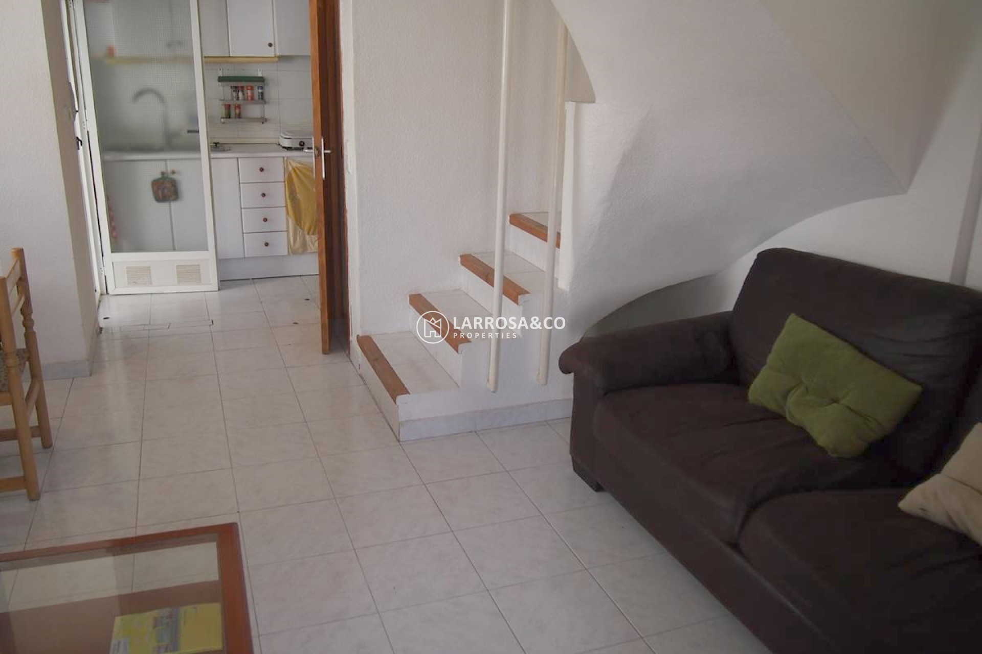 Уютный угловой дом с частным участком в урбанизации Эль Саладо в Торревьехе. Два этажа, 3 спальни, отдельная кухня, гостиная с обеденной зоной, гостевой туалет на первом этаже и ванная комната на втором этаже. Частная терраса на крыше дома.